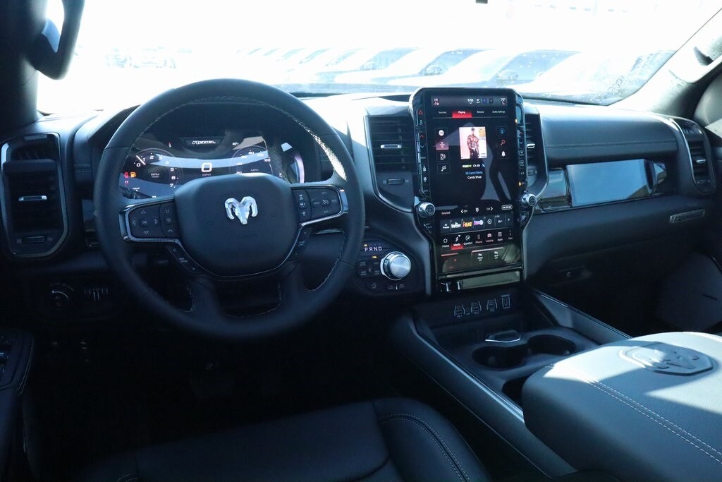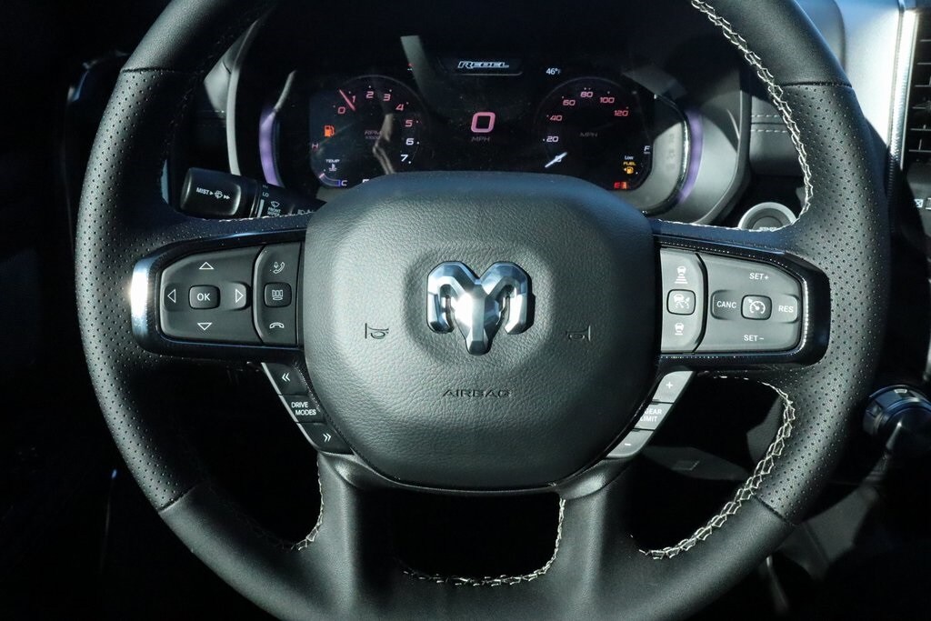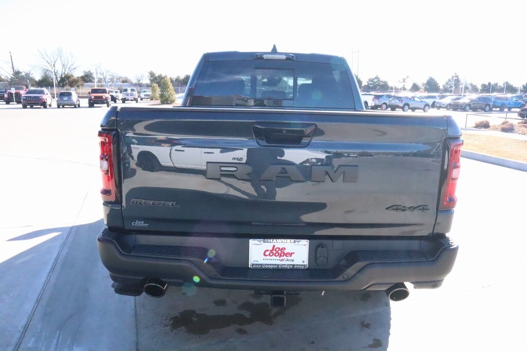 2026 Ram 1500 Bed Utility Group (Exterior 115V AC Outlet, MOPAR 4 Adjustable Cargo Tie-Down Hooks, and MOPAR Spray in Bedliner), Quick Order Package 21W Rebel, Rebel Level 2 Equipment Group (115V Auxiliary Rear Power Outlet, 14.4" Touchscreen Display, 2-Door Passive Entry, Front Door Locks, 4G LTE Wi-Fi Hot Spot, Accent Color Door Handles, Accent Color Premium Power Mirrors, Accent Color Tailgate Handle, Apple CarPlay, Auto Power-Folding Mirrors, Auto-Dimming Exterior Driver Mirror, Black Painted Exterior Mirrors Caps, Connected Travel and Traffic Services, Connectivity - US/Canada, Convex Wide-Angle Exterior Mirror Insert, Disassociated Touchscreen Display, Driver Seat Memory, Dual Wireless Charging Pad, Exterior Mirrors Approach Lamps, Exterior Mirrors Courtesy Lamps, Exterior Mirrors with Heating Element, Exterior Mirrors with Memory, Exterior Mirrors with Supplemental Signals, Front Passenger Interactive Display, Global Telematics Box Module, Google Android Auto, GPS Antenna Input, GPS Navigation, Harman/Kardon 19 Speaker Premium Sound, HD Radio, Heated Second Row Seats, Integrated Center Stack Radio, Integrated Voice Command with Bluetooth, Media Hub with 2 Charge Only USBs, Off-Road Information Pages, Power 2-Way Passenger Lumbar Adjust, Power Adjust 8-Way Front Passenger Seat, Power Adjustable Pedals with Memory, Power Tailgate, Proximity Approach/Departure Lamps, Radio: Uconnect 5 Nav with 14.4" Display, Radio/Driver Seat/Mirrors/Pedals Memory, Rain Sensitive Windshield Wipers, Rear Window Defroster, Security Alarm, SiriusXM Radio Service, SiriusXM with 360L, Smartphone as a Key Capable, and USB Host Flip), Technology Group (12-Way/1-Way Trailer Connector, Heads-Up Display, and LED CHMSL Lamp), 10 Speakers, 3.92 Rear Axle Ratio, 4 Way Front Headrests, 4-Wheel Disc Brakes, ABS brakes, Active Noise Control System, Air Conditioning, Alloy wheels, AM/FM radio: SiriusXM with 360L, Apple CarPlay/Android Auto, Auto High-beam Headlights, Auto-dimming Rear-View mirror, Automatic temperature control, Black Exterior Mirrors, Brake assist, Bucket Seats, Cloth/Vinyl Bucket Seats, Compass, Delay-off headlights, Dome Dual LED Reading Lamp, Driver door bin, Driver vanity mirror, Dual front impact airbags, Dual front side impact airbags, Dual-Pane Panoramic Sunroof, Electronic Stability Control, Front anti-roll bar, Front Bucket Seats, Front Center Armrest w/Storage, Front dual zone A/C, Front fog lights, Front License Plate Bracket, Front reading lights, Front Seat Back Map Pockets, Front wheel independent suspension, Full Length Upgraded Floor Console, Fully automatic headlights, Garage door transmitter, Heated door mirrors, Heated Front Seats, Heated front seats, Heated Steering Wheel, Heated steering wheel, Illuminated entry, Leather steering wheel, Low tire pressure warning, Manual Folding Exterior Mirrors, Navigation System, Occupant sensing airbag, Outside temperature display, Overhead airbag, Overhead console, Panic alarm, ParkView Rear Back-Up Camera, Passenger door bin, Passenger vanity mirror, Power 2-Way Driver Lumbar Adjust, Power Adjust 8-Way Driver Seat, Power door mirrors, Power driver seat, Power steering, Power windows, Radio data system, Radio: Uconnect 5 Navigation with 12.0" Display, Rear 60/40 Folding Seat, Rear anti-roll bar, Rear seat center armrest, Rear step bumper, Remote keyless entry, Speed control, Split folding rear seat, Steering wheel mounted audio controls, Tachometer, Telescoping steering wheel, Tilt steering wheel, Traction control, Trailer Brake Control, Trip computer, Variably intermittent wipers, Voltmeter, and Wheels: 18" x 8.0" Painted Mid-Gloss Black. Price includes:$1000 - 2026 National Bonus Cash . Exp. 03/02/2026 $3500 - 2026 National Retail Consumer Cash . Exp. 03/02/2026