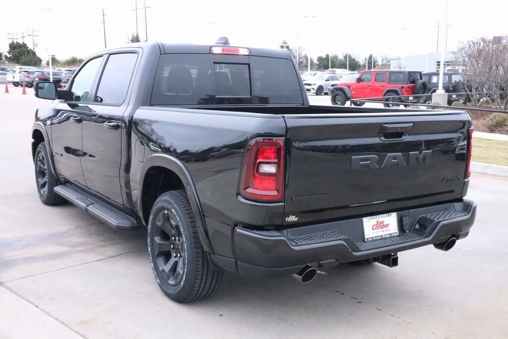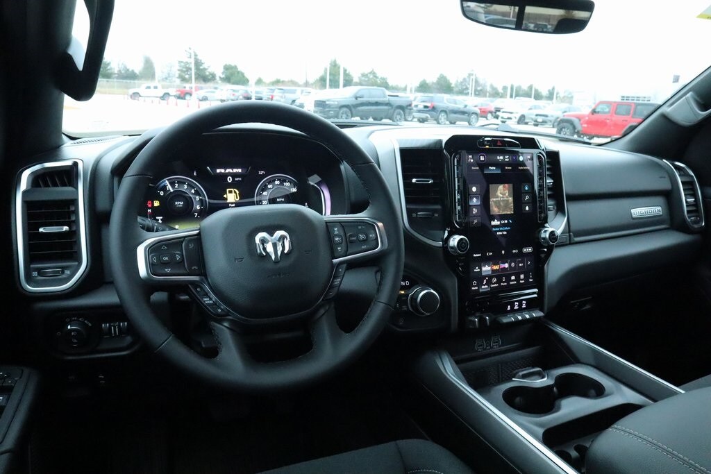 2026 Ram 1500 Big Horn Level 2 Equipment Group (115V Auxiliary Power Outlet, 115V Auxiliary Rear Power Outlet, 12" Touchscreen Display, 2nd Row in Floor Storage Bins, 3 Rear Seat Head Restraints, 4 Way Front Headrests, 400W Inverter, 4G LTE Wi-Fi Hot Spot, 9 Amplified Speakers with Subwoofer, Air Conditioning ATC with Dual Zone Control, Apple CarPlay, Auto Power-Folding Mirrors, Auto-Dimming Exterior Driver Mirror, Auto-Dimming Rear-View Mirror, Black Exterior Mirrors, Black Premium Power Mirrors, Body Color Fender Flares, Bucket Seats, Center Console Parts Module, Cluster 7.0" TFT Color Display, Configurable Drive Mode, Connected Travel and Traffic Services, Connectivity - US/Canada, Convex Wide-Angle Exterior Mirror Insert, Deluxe Cloth Bucket Seats, Disassociated Touchscreen Display, Exterior Mirrors Courtesy Lamps, Exterior Mirrors with Heating Element, Exterior Mirrors with Supplemental Signals, Front Seat Back Map Pockets, Full Length Floor Console, Global Telematics Box Module, Glove Box Lamp, Google Android Auto, GPS Antenna Input, GPS Navigation, HD Radio, Heated Front Seats, Heated Steering Wheel, Integrated Center Stack Radio, Integrated Voice Command with Bluetooth, Leather Wrapped Steering Wheel, LED Dome Lamp with on/Off Switch, LED Footwell Lighting, Manual Adjust 4-Way Front Passenger Seat, Media Hub with 2 Charge Only USBs, Overhead LED Lamps, Power 2-Way Driver Lumbar Adjust, Power Adjust 8-Way Driver Seat, Power Adjustable Pedals, Premium Overhead Console, Radio: Uconnect 5 Navigation with 12.0" Display, Rear 60/40 Folding Seat, Rear Center Armrest, Rear Power Sliding Window, Rear Window Defroster, Remote Tailgate Release, Security Alarm, SiriusXM Radio Service, SiriusXM with 360L, Steering Wheel Mounted Audio Controls, Sun Visors with Illuminated Vanity Mirrors, Universal Garage Door Opener, and USB Host Flip), Night Edition (Accent Color Door Handles, Accent Color Premium Power Mirrors, Accent Color Tailgate Handle, Anti-Spin Differential Rear Axle, Black Exterior Truck Badging, Black Headlamp Bezels, Black Interior Accents, Black Painted Exterior Mirrors Caps, Black Tail Lamp Bezels, Body Color Front Bumper, Body Color Rear Bumper with Step Pads, Dual Exhaust with Black Tips, Grille Black Surround Black Mesh, RAM Grille Badge - Black, and Wheels: 20" x 9.0" Aluminum Painted Clad), Quick Order Package 27Z Big Horn, 33 Gallon Fuel Tank, 4-Wheel Disc Brakes, 48V Belt Starter Generator, 6 Speakers, ABS brakes, Air Conditioning, Alloy wheels, AM/FM radio, Apple CarPlay/Android Auto, Auto High-beam Headlights, Brake assist, Bumpers: chrome, Cloth Bucket Seats, Cluster 12" TFT Color Display, Compass, Delay-off headlights, Driver door bin, Dual front impact airbags, Dual front side impact airbags, Electronic Stability Control, Front anti-roll bar, Front Bucket Seats, Front Center Armrest w/Storage, Front fog lights, Front reading lights, Front wheel independent suspension, Fully automatic headlights, Heated door mirrors, Illuminated entry, Low tire pressure warning, Manual Adjust 4-Way Driver Seat, Manual Folding Exterior Mirrors, Mopar Black Tubular Side Steps, MOPAR Front and Rear Rubber Floor Mats, Occupant sensing airbag, Outside temperature display, Overhead airbag, Overhead console, Panic alarm, ParkView Rear Back-Up Camera, Passenger door bin, Passenger vanity mirror, Power door mirrors, Power steering, Power windows, Radio data system, Radio: Uconnect 5 W with 8.4" Display, RAM Grille Badge - Chrome, Rear anti-roll bar, Rear step bumper, Remote keyless entry, S Price includes:$2000 - 2026 National Select Inventory Bonus Cash. Exp. 03/02/2026 $3500 - 2026 National Retail Consumer Cash . Exp. 03/02/2026 $750 - 2026 Southwest BC Retail Bonus Cash .