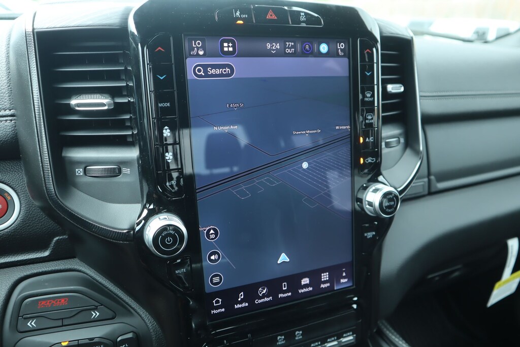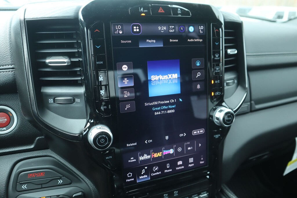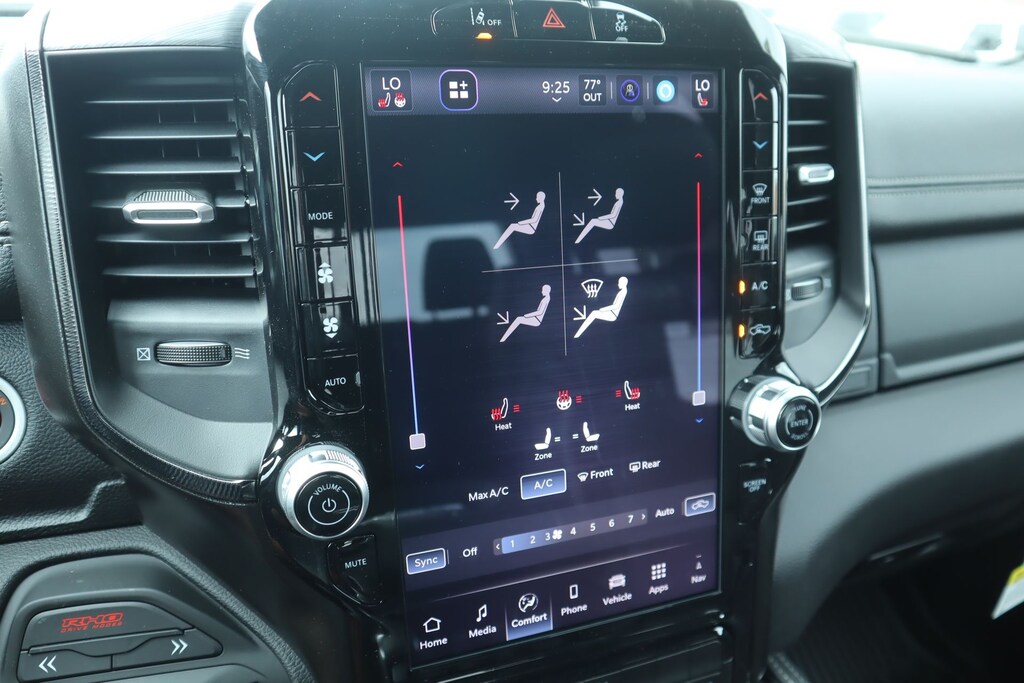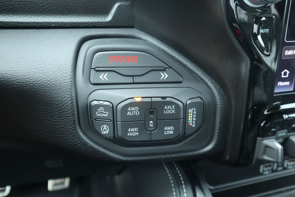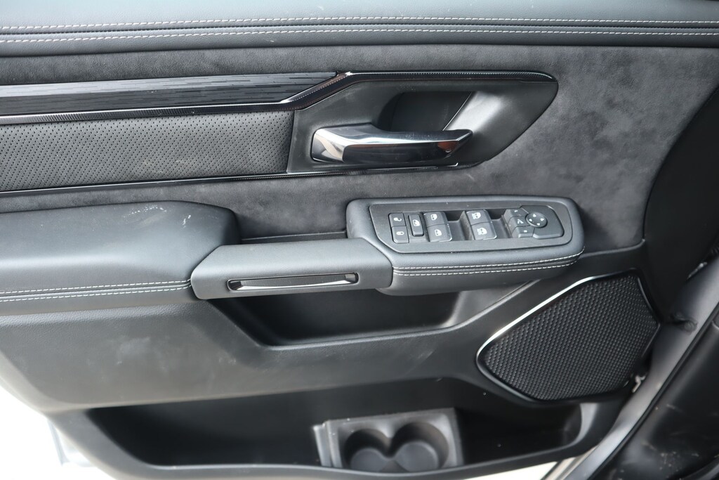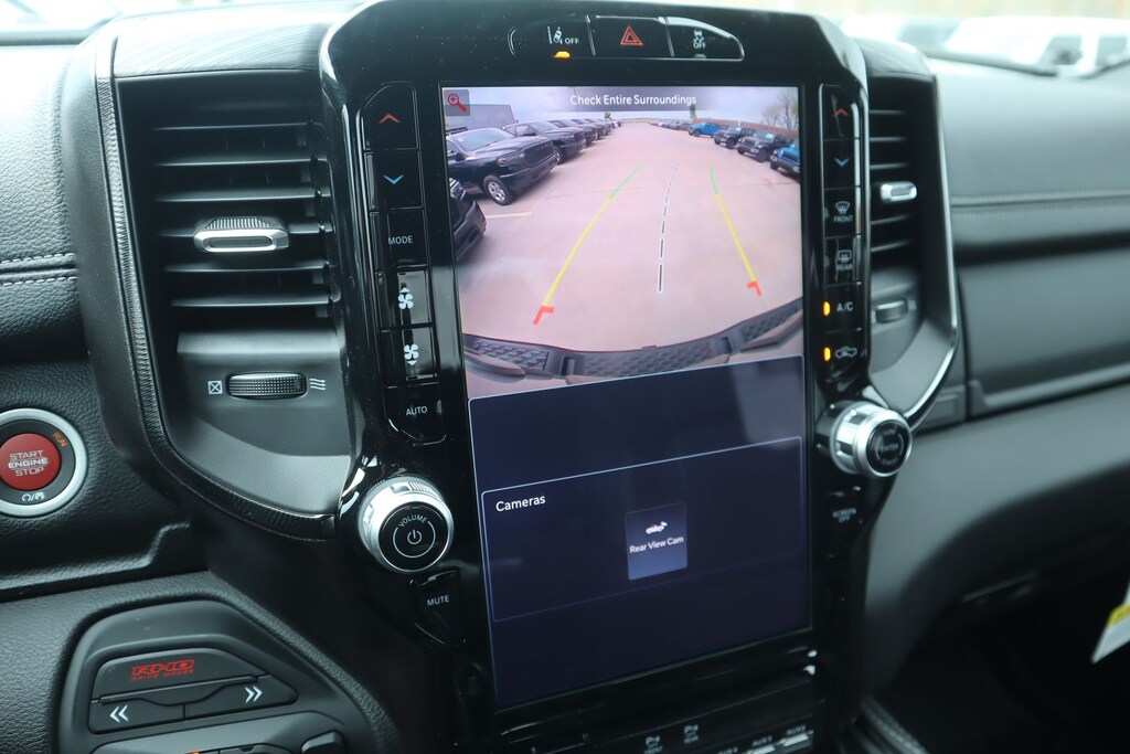 2026 Ram 1500 Bed Utility Group (Exterior 115V AC Outlet, MOPAR 4 Adjustable Cargo Tie-Down Hooks, and MOPAR Deployable Bed Step), Quick Order Package 22Y RHO, 10 Speakers, 3.92 Rear Axle Ratio, 4-Wheel Disc Brakes, 4G LTE Wi-Fi Hot Spot, ABS brakes, Adaptive suspension, Adjustable pedals, Air Conditioning, Alloy wheels, AM/FM radio, Apple CarPlay/Android Auto, Auto High-beam Headlights, Auto Power-Folding Mirrors, Auto-dimming door mirrors, Auto-Dimming Exterior Driver Mirror, Auto-dimming Rear-View mirror, Automatic temperature control, Brake assist, Compass, Connected Travel and Traffic Services, Connectivity - US/Canada, Delay-off headlights, Disassociated Touchscreen Display, Driver door bin, Driver vanity mirror, Dual front impact airbags, Dual front side impact airbags, Electronic Stability Control, Exterior Mirrors Courtesy Lamps, Exterior Mirrors with Heating Element, Exterior Mirrors with Supplemental Signals, Exterior Parking Camera Rear, Flareside Box, Front anti-roll bar, Front Bucket Seats, Front Center Armrest w/Storage, Front dual zone A/C, Front fog lights, Front reading lights, Front wheel independent suspension, Fully automatic headlights, Garage door transmitter, GPS Navigation, HD Radio, Heated door mirrors, Heated front seats, Heated steering wheel, Illuminated entry, Integrated Center Stack Radio, Integrated Voice Command with Bluetooth, Leather Shift Knob, Leather steering wheel, Leather Trimmed Bucket Seats, Low tire pressure warning, Navigation System, Occupant sensing airbag, Outside temperature display, Overhead airbag, Overhead console, Panic alarm, Passenger door bin, Passenger vanity mirror, Power door mirrors, Power driver seat, Power passenger seat, Power steering, Power windows, Radio data system, Radio: Uconnect 5 Navigation with 12.0" Display, Rear reading lights, Rear seat center armrest, Rear step bumper, Rear window defroster, Remote keyless entry, Security system, SiriusXM Radio Service, Speed control, Split folding rear seat, Sport steering wheel, Steering wheel mounted audio controls, Tachometer, Telescoping steering wheel, Tilt steering wheel, Traction control, Trip computer, Turn signal indicator mirrors, USB Host Flip, Variably intermittent wipers, Voltmeter, and Wheels: 18" x 9" Black Paint/Polish Aluminum.