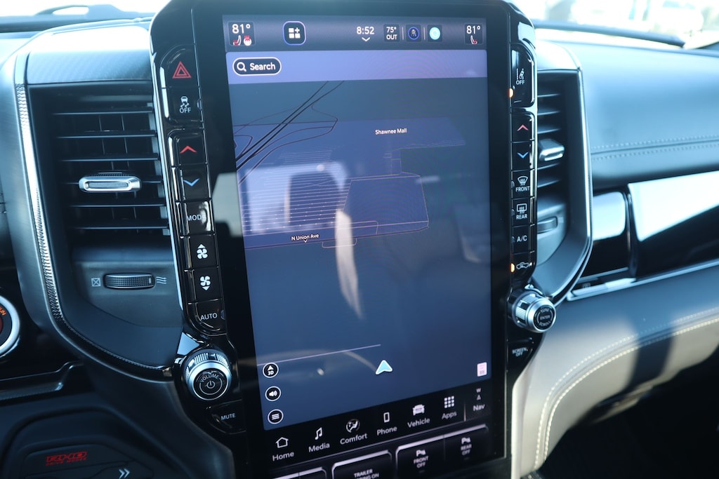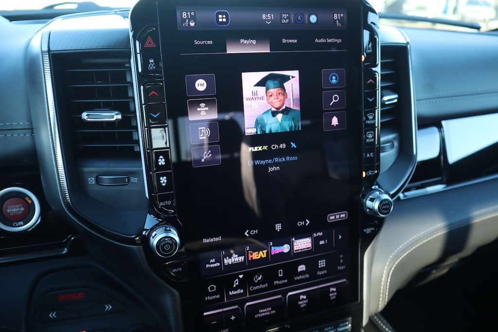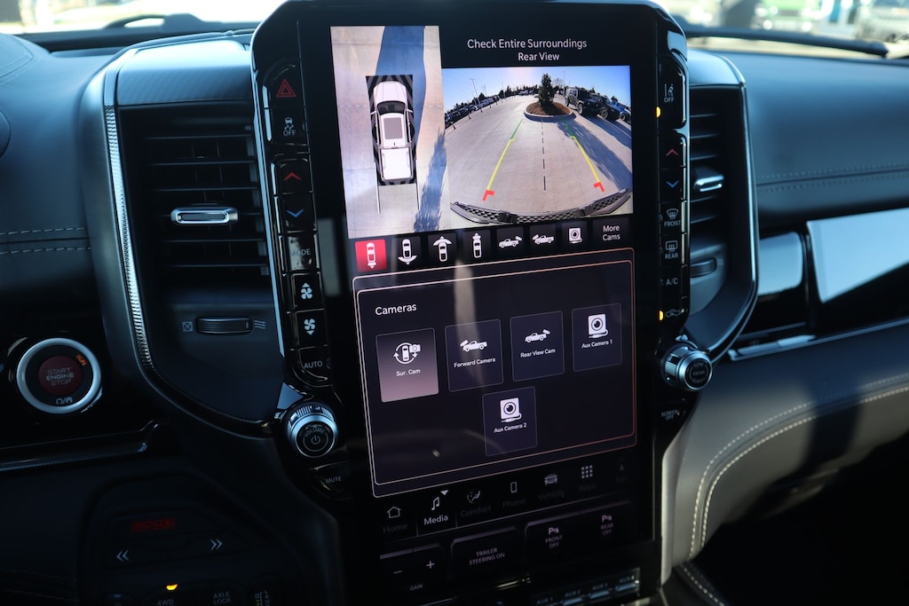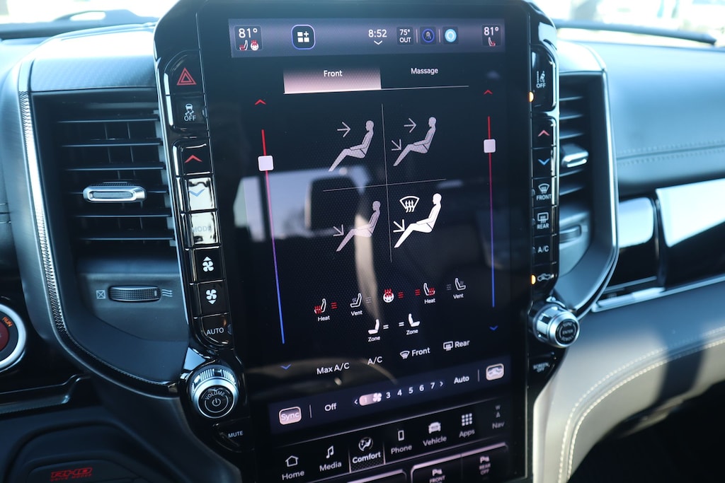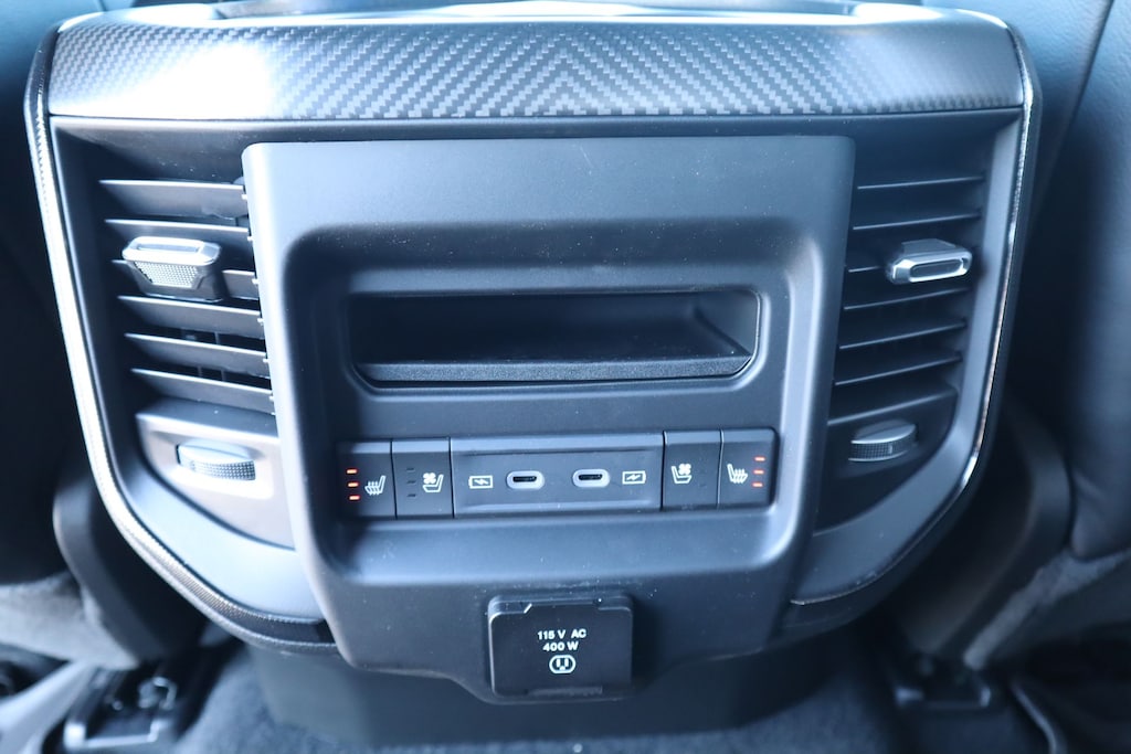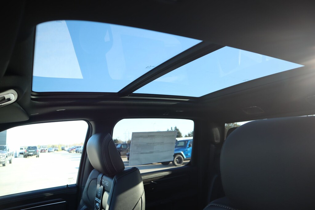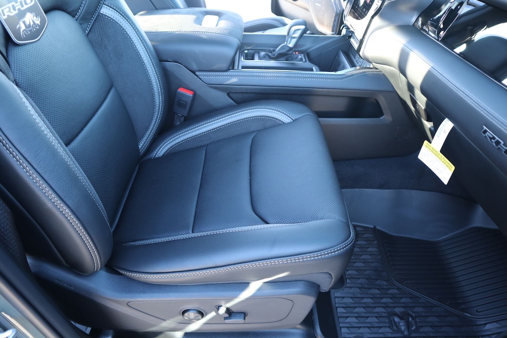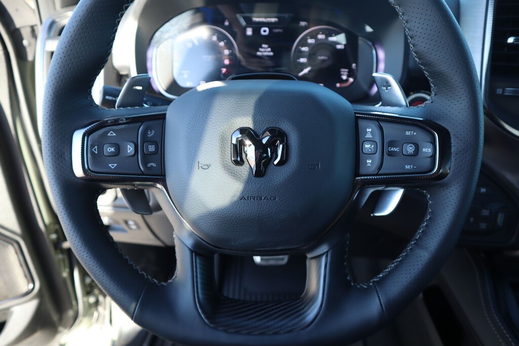 2026 Ram 1500 Quick Order Package 22Y RHO, RHO Level 1 Equipment Group (12-Way/1-Way Trailer Connector, 14.4" Touchscreen Display, 240 Amp Alternator, 4G LTE Wi-Fi Hot Spot, Connected Travel and Traffic Services, Connectivity - US/Canada, Disassociated Touchscreen Display, Driver Power Seat Back Massage, Driver Seat Memory, Driver/Passenger Wrapped Assist Handles, Drowsy Driver Detection, Dual Wireless Charging Pad, Evasive Steer Assist, Exterior Mirrors with Memory, Front Passenger Interactive Display, Front Passenger Power Seat Back Massage, Full Length Premium Upgraded Floor Console, GPS Navigation, Hands-Free Active Driving Assist System, Harman/Kardon 19 Speaker Premium Sound, HD Radio, Heads-Up Display, Heated Second Row Seats, Integrated Center Stack Radio, Integrated Voice Command with Bluetooth, Intersection Collision Assist System, Leather/Carbon Flat-Bottom Steering Wheel, LED CHMSL Lamp, Luxury Front Door Trim Panel, Power Adjustable Pedals with Memory, Power Tailgate, Premium Wrapped Instrument Panel Bezel, Radio: Uconnect 5 Nav with 14.4" Display, Radio/Driver Seat/Mirrors/Pedals Memory, Rain Sensitive Windshield Wipers, Real Carbon Fiber Interior Accents, Rear 60/40 Folding Split Recline Seat, SiriusXM Radio Service, Smartphone as a Key Capable, Surround View Camera System, Traffic Sign Recognition, USB Host Flip, Ventilated Front Seats, and Ventilated Rear Seats), Trailer Tow Group (Trailer Reverse Steering Control and Trailer Tire Pressure Monitoring System), 10 Speakers, 3.92 Rear Axle Ratio, 4-Wheel Disc Brakes, ABS brakes, Adaptive suspension, Adjustable pedals, Air Conditioning, Alloy wheels, AM/FM radio, Apple CarPlay/Android Auto, Auto High-beam Headlights, Auto Power-Folding Mirrors, Auto-dimming door mirrors, Auto-Dimming Exterior Driver Mirror, Auto-dimming Rear-View mirror, Automatic temperature control, Brake assist, Compass, Delay-off headlights, Dome Dual LED Reading Lamp, Driver door bin, Driver vanity mirror, Dual front impact airbags, Dual front side impact airbags, Dual-Pane Panoramic Sunroof, Electronic Stability Control, Exterior Mirrors Courtesy Lamps, Exterior Mirrors with Heating Element, Exterior Mirrors with Supplemental Signals, Exterior Parking Camera Rear, Flareside Box, Front anti-roll bar, Front Bucket Seats, Front Center Armrest w/Storage, Front dual zone A/C, Front fog lights, Front reading lights, Front wheel independent suspension, Fully automatic headlights, Garage door transmitter, Heated door mirrors, Heated front seats, Heated steering wheel, Illuminated entry, Leather Shift Knob, Leather steering wheel, Leather Trimmed Bucket Seats, Low tire pressure warning, Navigation System, Occupant sensing airbag, Outside temperature display, Overhead airbag, Overhead console, Panic alarm, Passenger door bin, Passenger vanity mirror, Power door mirrors, Power driver seat, Power passenger seat, Power steering, Power windows, Radio data system, Radio: Uconnect 5 Navigation with 12.0" Display, Rear reading lights, Rear seat center armrest, Rear step bumper, Rear window defroster, Remote keyless entry, Security system, Speed control, Split folding rear seat, Sport steering wheel, Steering wheel mounted audio controls, Tachometer, Telescoping steering wheel, Tilt steering wheel, Traction control, Trip computer, Turn signal indicator mirrors, Variably intermittent wipers, Voltmeter, and Wheels: 18" x 9" Black Paint/Polish Aluminum.