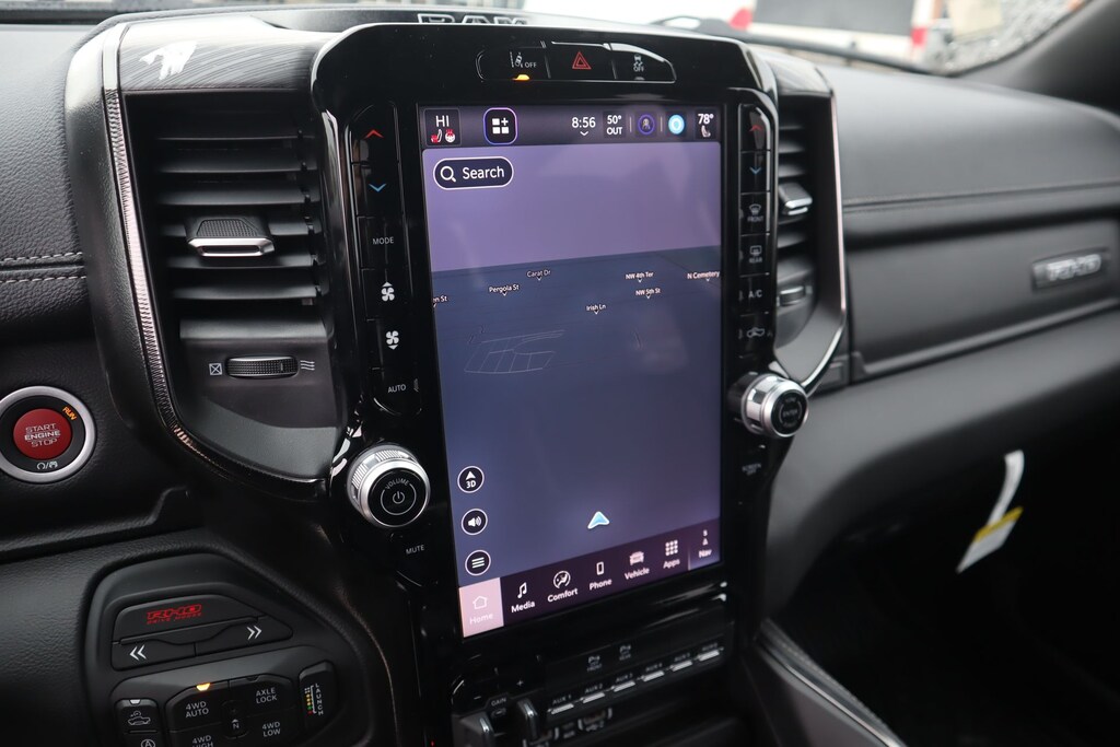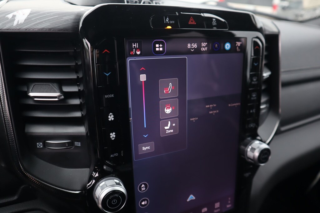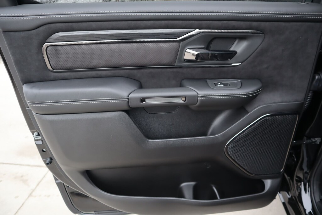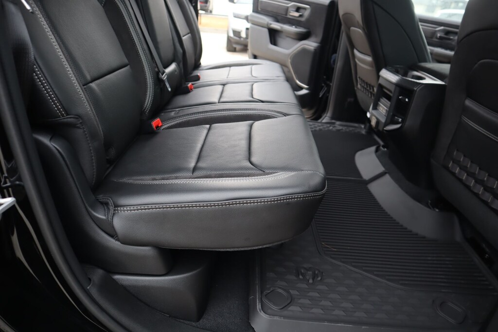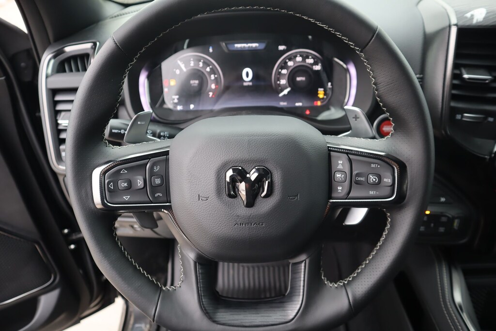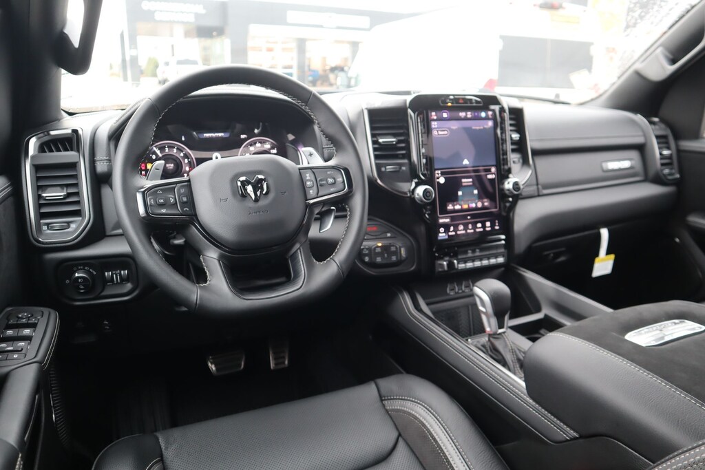 THIS VEHICLE COMES EQUIPPED WITH THE FOLLOWING OPTIONS AND FEATURES: Quick Order Package 22Y RHO, 10 Speakers, 3.92 Rear Axle Ratio, 4-Wheel Disc Brakes, 4G LTE Wi-Fi Hot Spot, ABS brakes, Adaptive suspension, Adjustable pedals, Air Conditioning, Alloy wheels, AM/FM radio, Apple CarPlay/Android Auto, Auto High-beam Headlights, Auto-dimming Rear-View mirror, Automatic temperature control, Brake assist, Compass, Connected Travel and Traffic Services, Connectivity - US/Canada, Delay-off headlights, Disassociated Touchscreen Display, Driver door bin, Driver vanity mirror, Dual front impact airbags, Dual front side impact airbags, Electronic Stability Control, Exterior Parking Camera Rear, Flareside Box, Front anti-roll bar, Front Bucket Seats, Front Center Armrest w/Storage, Front dual zone A/C, Front fog lights, Front reading lights, Front wheel independent suspension, Fully automatic headlights, Garage door transmitter, GPS Navigation, HD Radio, Heated front seats, Heated steering wheel, Illuminated entry, Integrated Center Stack Radio, Integrated Voice Command with Bluetooth, Leather Shift Knob, Leather steering wheel, Leather Trimmed Bucket Seats, Low tire pressure warning, Navigation System, Occupant sensing airbag, Outside temperature display, Overhead airbag, Overhead console, Passenger door bin, Passenger vanity mirror, Power driver seat, Power passenger seat, Power steering, Power windows, Radio data system, Radio: Uconnect 5 Navigation with 12.0" Display, Rear reading lights, Rear seat center armrest, Rear window defroster, Remote keyless entry, SiriusXM Radio Service, Split folding rear seat, Sport steering wheel, Steering wheel mounted audio controls, Tachometer, Telescoping steering wheel, Tilt steering wheel, Traction control, Trip computer, Variably intermittent wipers, Voltmeter, Wheels: 18" x 9" Black Paint/Polish Aluminum, Auto Power-Folding Mirrors, Auto-dimming door mirrors, Auto-Dimming Exterior Driver Mirror, Exterior Mirrors Courtesy