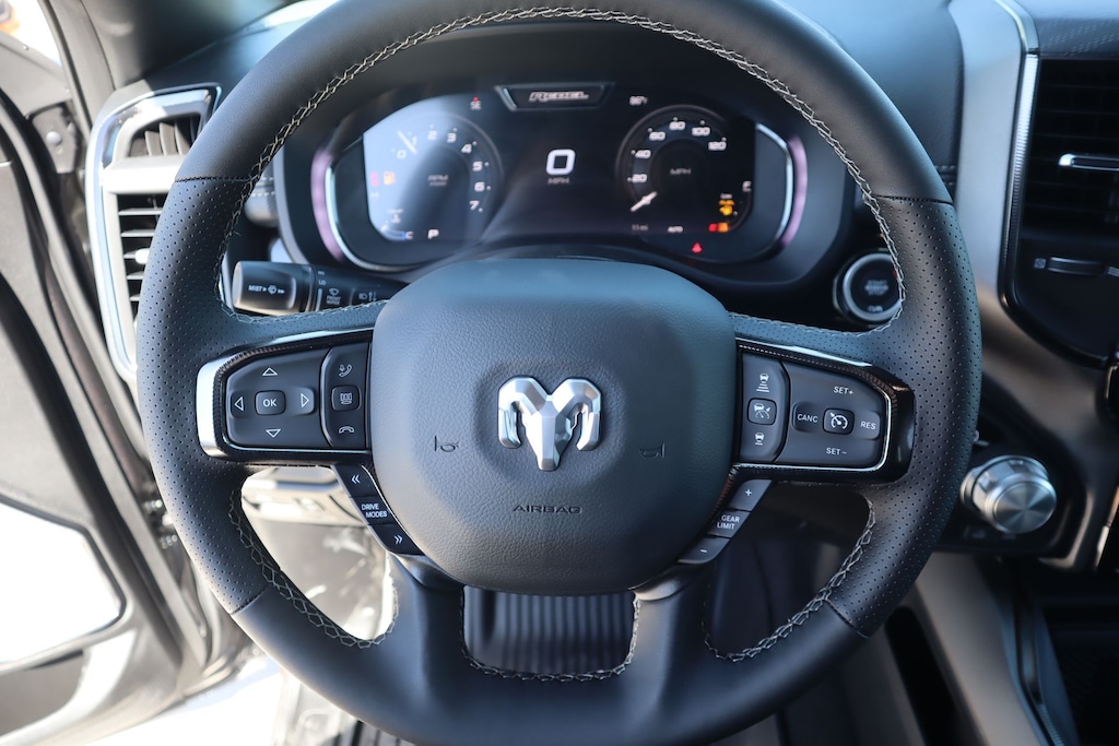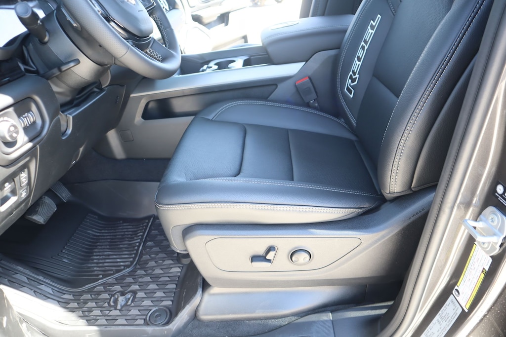 THIS VEHICLE COMES EQUIPPED WITH THE FOLLOWING OPTIONS AND FEATURES: Bed Utility Group (Exterior 115V AC Outlet, MOPAR 4 Adjustable Cargo Tie-Down Hooks, and MOPAR Spray in Bedliner), Quick Order Package 21W Rebel, Rebel Level 2 Equipment Group (115V Auxiliary Rear Power Outlet, 14.4" Touchscreen Display, 2-Door Passive Entry, Front Door Locks, 4G LTE Wi-Fi Hot Spot, Accent Color Door Handles, Accent Color Premium Power Mirrors, Accent Color Tailgate Handle, Apple CarPlay, Auto Power-Folding Mirrors, Auto-Dimming Exterior Driver Mirror, Black Painted Exterior Mirrors Caps, Connected Travel and Traffic Services, Connectivity - US/Canada, Convex Wide-Angle Exterior Mirror Insert, Disassociated Touchscreen Display, Driver Seat Memory, Dual Wireless Charging Pad, Exterior Mirrors Approach Lamps, Exterior Mirrors Courtesy Lamps, Exterior Mirrors with Heating Element, Exterior Mirrors with Memory, Exterior Mirrors with Supplemental Signals, Front Passenger Interactive Display, Global Telematics Box Module, Google Android Auto, GPS Antenna Input, GPS Navigation, Harman/Kardon 19 Speaker Premium Sound, HD Radio, Heated Second Row Seats, Integrated Center Stack Radio, Integrated Voice Command with Bluetooth, Media Hub with 2 Charge Only USBs, Off-Road Information Pages, Power 2-Way Passenger Lumbar Adjust, Power Adjust 8-Way Front Passenger Seat, Power Adjustable Pedals with Memory, Power Tailgate, Proximity Approach/Departure Lamps, Radio: Uconnect 5 Nav with 14.4" Display, Radio/Driver Seat/Mirrors/Pedals Memory, Rain Sensitive Windshield Wipers, Rear Window Defroster, Security Alarm, SiriusXM Radio Service, SiriusXM with 360L, Smartphone as a Key Capable, and USB Host Flip), Navigation System, 10 Speakers, 3.92 Rear Axle Ratio, 4 Way Front Headrests, 4-Wheel Disc Brakes, ABS brakes, Active Noise Control System, Air Conditioning, Alloy wheels, AM/FM radio: SiriusXM with 360L, Apple CarPlay/Android Auto, Auto High-beam Headlights, Auto-dimming Rear-View mirror, Automatic temperature control, Black Exterior Mirrors, Brake assist, Bucket Seats, Cloth/Vinyl Bucket Seats, Compass, Delay-of Price includes: $3500 - 2026 National Retail Bonus Cash . Exp. 04/3