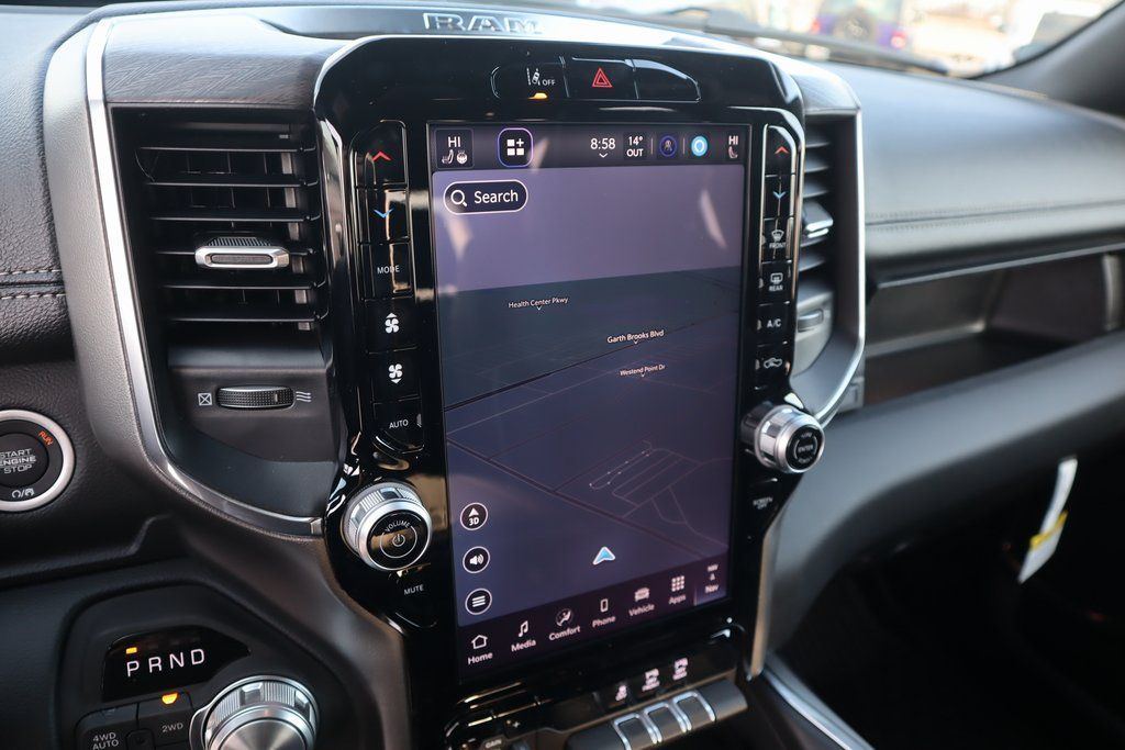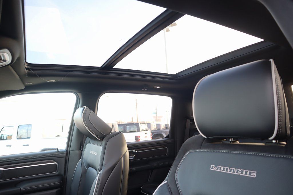 2026 Ram 1500 Bed Utility Group (Exterior 115V AC Outlet, MOPAR 4 Adjustable Cargo Tie-Down Hooks, and MOPAR Spray in Bedliner), Laramie Level 1 Equipment Group (Rain Sensitive Windshield Wipers and Remote Tailgate Release), Night Edition (Accent Color Door Handles, Accent Color Premium Power Mirrors, Accent Color Tailgate Handle, Anti-Spin Differential Rear Axle, Auto Power-Folding Mirrors, Auto-Dimming Exterior Driver Mirror, Black Exterior Truck Badging, Black Headlamp Bezels, Black Interior Accents, Black Painted Exterior Mirrors Caps, Black Tail Lamp Bezels, Body Color Front Bumper, Body Color Rear Bumper with Step Pads, Convex Wide-Angle Exterior Mirror Insert, Dual Exhaust with Black Tips, Exterior Mirrors Approach Lamps, Exterior Mirrors Courtesy Lamps, Exterior Mirrors with Heating Element, Exterior Mirrors with Memory, Exterior Mirrors with Supplemental Signals, Grille Surround 3 Black Texture 2 Black, Pirelli Brand Tires, Proximity Approach/Departure Lamps, RAM Grille Badge - Black, Sport Performance Hood, and Wheels: 22" x 9" Forged Aluminum), Quick Order Package 27H Laramie, 10 Speakers, 4-Wheel Disc Brakes, 4G LTE Wi-Fi Hot Spot, ABS brakes, Active Noise Control System, Adjustable pedals, Air Conditioning, Alloy wheels, AM/FM radio: SiriusXM with 360L, Apple CarPlay/Android Auto, Audio memory, Auto High-beam Headlights, Auto-dimming door mirrors, Auto-dimming Rear-View mirror, Automatic temperature control, Brake assist, Bumpers: chrome, Chrome Exterior Mirrors, Compass, Connected Travel and Traffic Services, Connectivity - US/Canada, Delay-off headlights, Dome Dual LED Reading Lamp, Driver door bin, Driver vanity mirror, Dual front impact airbags, Dual front side impact airbags, Dual-Pane Panoramic Sunroof, Electronic Stability Control, Front anti-roll bar, Front Bucket Seats, Front Center Armrest w/Storage, Front dual zone A/C, Front fog lights, Front License Plate Bracket, Front reading lights, Front wheel independent suspension, Fully automatic headlights, Garage door transmitter, GPS Navigation, Heated door mirrors, Heated front seats, Heated rear seats, Heated steering wheel, Illuminated entry, Integrated Center Stack Radio, Integrated Voice Command with Bluetooth, Leather steering wheel, Leather Trimmed Bucket Seats, LED Dome/Reading Lamp, Low tire pressure warning, Memory seat, MOPAR Front and Rear Rubber Floor Mats, Navigation System, Occupant sensing airbag, Off-Road Information Pages, Outside temperature display, Overhead airbag, Overhead console, Panic alarm, ParkView Rear Back-Up Camera, Passenger door bin, Passenger vanity mirror, Pedal memory, Power door mirrors, Power driver seat, Power passenger seat, Power steering, Power windows, Radio data system, Radio: Uconnect 5 Navigation with 12.0" Display, RAM Grille Badge - Chrome, Rear anti-roll bar, Rear reading lights, Rear seat center armrest, Rear step bumper, Rear Wheelhouse Liners, Remote keyless entry, Security system, SiriusXM Radio Service, SiriusXM with 360L, Speed control, Split folding rear seat, Steering wheel mounted audio controls, Tachometer, Telescoping steering wheel, Tilt steering wheel, Traction control, Trailer Brake Control, Trip computer, Turn signal indicator mirrors, USB Host Flip, Variably intermittent wipers, Ventilated front seats, Voltmeter, and Wheels: 20" x 9" Premium Paint/Polish. Price includes:$3500 - 2026 National Retail Bonus Cash . Exp. 04/30/2026 $750 - 2026 Southwest BC Retail Bonus Cash . Exp. 04/30/2026