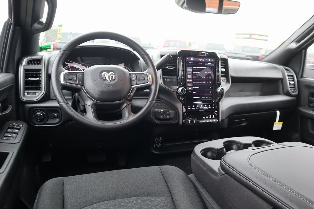 THIS VEHICLE COMES EQUIPPED WITH THE FOLLOWING OPTIONS AND FEATURES: Cold Weather Group (Engine Block Heater and MOPAR Winter Front Grille Cover), Quick Order Package 24B Warlock (2 Way Rear Headrest Seat, 4 Way Front Headrests, 40/20/40 Split Bench Seat, Anti-Spin Differential Rear Axle, Auto Power-Folding Mirrors, Black Exterior Mirrors, Black Wheel Center Hub, Black Wheel Flares, Carpet Floor Covering, Cloth 40/20/40 Bench Seat, Exterior Mirrors Courtesy Lamps, Exterior Mirrors with Heating Element, Exterior Mirrors with Supplemental Signals, Forward and Reverse Utility Lights, Front Armrest with Cupholders, Front Performance Tuned Shock Absorbers, Manual Adjust 4-Way Driver Seat, Manual Adjust 4-Way Front Passenger Seat, Mirror Running Lights, MOPAR Front and Rear Rubber Floor Mats, Power Adjust Mirrors, Power Heated Folding Telescopic Mirrors, Power Telescoping Mirrors, Power-Adjustable Convex Aux Mirrors, Rear Folding Seat, Rear Performance Tuned Shock Absorbers, Rear Wheelhouse Liners, Remote USB Port - Charge Only, Storage Tray, Warlock Decal, and Wheels: 20" x 8.0" Black Diamond Cut Aluminum), Tradesman Level 1 Equipment Group (GPS Navigation, 115-Volt Auxiliary Front Power Outlet, 12" Touchscreen Display, 400W Inverter, 4G LTE Wi-Fi Hot Spot, Air Conditioning ATC with Dual Zone Control, Alexa Built-in, Apple CarPlay, Auto-Dimming Rear-View Mirror, Connected Travel and Traffic Services, Connectivity - US/Canada, Disassociated Touchscreen Display, Emergency Vehicle Alert System (EVAS), Exterior 115V AC Outlet, For Details, Visit DriveUconnect.com, For More Info, Call 800-643-2112, Global Telematics Box Module, Google Android Auto, GPS Antenna Input, HD Radio, Integrated Voice Command with Bluetooth, Off-Road Info Pages, Radio: Uconnect 5 Navigation with 12.0" Display, Rear Power Sliding Window, Selectable Tire Fill Alert, SiriusXM Radio Service, SiriusXM with 360L, Tinted Acoustic Windshield Glass, and Trailer Tow Pages), 4-Wheel Disc Brakes, 5th Wheel/Gooseneck Towing Prep Group, 6 Speakers, ABS brakes, Air Conditioning, AM/FM radio: SiriusXM, Apple CarPlay/Android Auto, Brake assist, Clearance Lamps, Compass, Delay-off headlights, Driver door bin, Dual front impact airbags, Dual front side impact airbags, Electronic Stability Control, Front anti-roll bar, Front Center Armrest w/Storage, Front fog lights, Front reading lights, Fully automatic headlights, Illuminated entry, Low tire pressure warning, Manual Folding Exterior Mirrors, Manual Telescoping Mirrors, Mopar Black Tubular Side Steps, Occupant sensing airbag, Outside temperature display, Overhead airbag, Overhead console, Panic alarm, ParkView Rear Back-Up Camera, Passenger door bin, Passenger vanity mirror, Price includes: $1000 - 2026 National Bonus Cash . Exp. 03/02/2026 $1000 - 2026 Southwest BC Retail Bonus Cash . Exp. 03/0