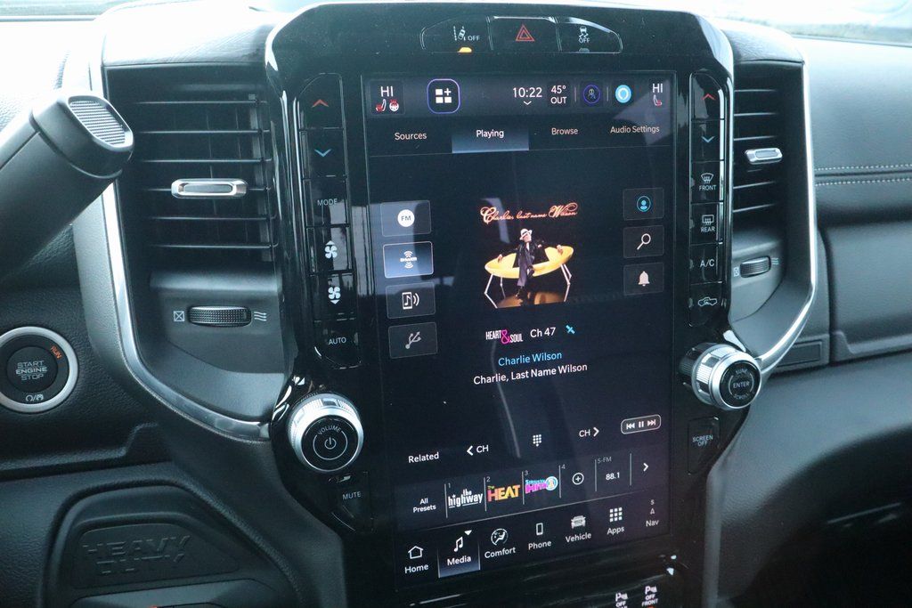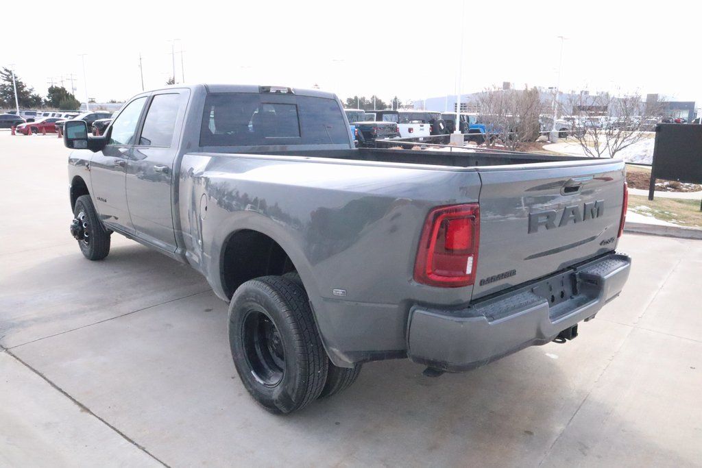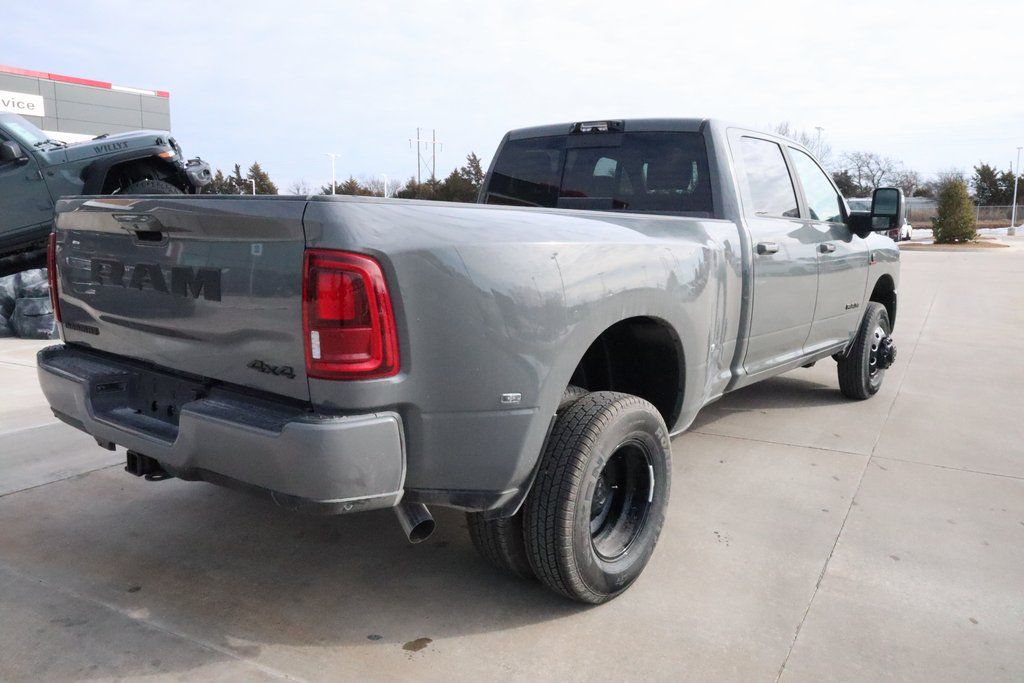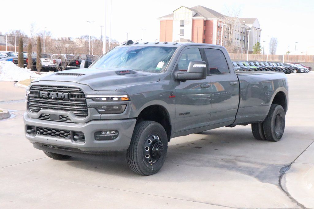2026 Ram 3500 Cold Weather Group (Engine Block Heater and MOPAR Winter Front Grille Cover), Laramie Level 1 Plus Equipment Group (#1 Seat Foam Cushion, 115V Auxiliary Rear Power Outlet, 2 Way Rear Headrest Seat, 2nd Row in Floor Storage Bins, 4 Way Front Headrests, Active Lane Management System, Adaptive Steering System, Auto Adjust in Reverse Exterior Mirrors, Auto Dimming Exterior Passenger Mirror, Auto High Beam Headlamp Control, Auto Power-Folding Mirrors, Auto-Dimming Exterior Mirrors, Bucket Seats, Center Stop Lamp with Cargo View Camera, Chrome Exterior Mirrors, Drowsy Driver Detection, Dual Wireless Charging Pad, Exterior Mirrors Courtesy Lamps, Exterior Mirrors with Heating Element, Exterior Mirrors with Memory, Exterior Mirrors with Supplemental Signals, Foam Bottle Insert (door Trim Panel), Folding Flat Load Floor Storage, Forward and Reverse Utility Lights, Front Seat Back Map Pockets, Full Length Upgraded Floor Console, Heated Front Seats, Heated Steering Wheel, High Back Seats, Leather Trimmed Bucket Seats, LED Bed Lighting, Mirror Running Lights, MOPAR Deployable Bed Step, MOPAR Spray in Bedliner, Power 2-Way Driver Lumbar Adjust, Power 2-Way Passenger Lumbar Adjust, Power Adjust 8-Way Driver Seat, Power Adjust 8-Way Front Passenger Seat, Power Adjust Mirrors, Power Adjustable Pedals with Memory, Power Heat Fold Memory Telescopic Mirrors, Power Telescoping Mirrors, Power-Adjustable Convex Aux Mirrors, Radio/Driver Seat/Mirrors/Pedals Memory, Rain Sensitive Windshield Wipers, Rear 60/40 Folding Seat, Remote Tailgate Release, Traffic Sign Recognition, and Ventilated Front Seats), Night Edition (Black Exterior Mirrors, Black Exterior Truck Badging, Black Wheel Center Hub, Body Color Grille Surround, Gloss Black Grille Billets/Accents, and Sport Performance Hood), Quick Order Package 24H Laramie, Towing Technology Group (Surround View Camera System, Trailer Reverse Guidance, and Trailer Tire Pressure Monitoring System), 10 Speakers, 4-Wheel Disc Brakes, 4G LTE Wi-Fi Hot Spot, 50 Gallon Fuel Tank, 5th Wheel/Gooseneck Towing Prep Group, 6000# Front Axle with Hub Extension, ABS brakes, Air Conditioning, Alexa Built-in, Alloy wheels, AM/FM radio: SiriusXM with 360L, Apple CarPlay, Apple CarPlay/Android Auto, Auto-dimming Rear-View mirror, Automatic temperature control, Box and Rear Fender Clearance Lamps, Brake assist, Bumpers: body-color, Center Hub, Clearance Lamps, Compass, Connected Travel and Traffic Services, Connectivity - US/Canada, Delay-off headlights, Disassociated Touchscreen Display, Driver door bin, Driver vanity mirror, Dual front impact airbags, Dual front side impact airbags, Dual Rear Wheels, Electronic Stability Control, Emergency Vehicle Alert System (EVAS), Front anti-roll bar, Front Center Armrest w/Storage, Front dual zone A/C, Front fog lights, Front reading lights, Fully automatic headlights, Garage door transmitter, Global Telematics Box Module, Google Android Auto, GPS Antenna Input, GPS Navigation, HD Radio, Heated door mirrors, Heated front seats, Heated steering wheel, Illuminated entry, Integrated Voice Command with Bluetooth, Leather Trim 40/20/40 Bench Seat, Low tire pressure warning, MOPAR Front and Rear Rubber Floor Mats, Navigation System, Nexen Brand Tires, Occupant sensing airbag, Off-Road Information Pages, Outside temperature display, Overhead airbag, Overhead console, Panic alarm, ParkView Rear Back-Up Camera, Passenger door bin, Passenger vanity mirror, Power door mirrors, Power driver seat, Power passenger seat, Power steering, Power windows, Radio data system, Radio: Uconnect 5 Navigation with 12.0" Display, Rear reading lights, Rear seat center armrest, Rear step bumper, Rear window defroster, Remote keyless entry, Security system, Selectable T Price includes:$1000 - 2026 National Bonus Cash .