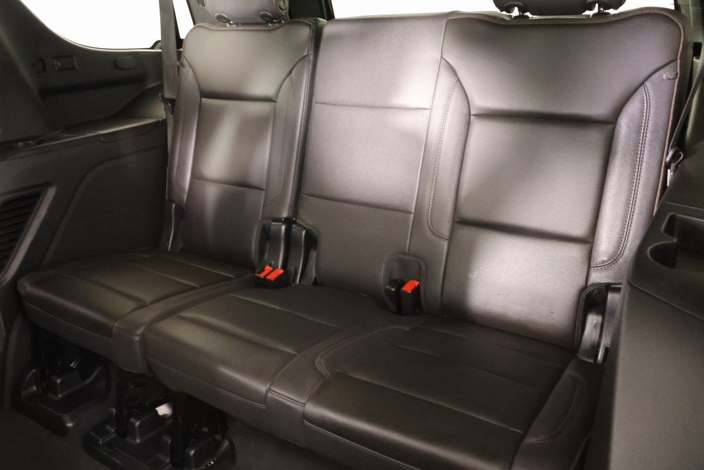 THIS VEHICLE COMES EQUIPPED WITH THE FOLLOWING OPTIONS AND FEATURES: License Plate Front Mounting Package, Preferred Equipment Group 3LZ (15" Diagonal Multi-Color Head-Up Display, 1st & 2nd Row Color-Keyed Carpeted Floor Mats, 2-Speed Active Electronic AutoTrac Transfer Case, 3rd Row 60/40 Power-Folding Split-Bench Seat, Bose 10-Speaker Centerpoint Surround Audio Sys Ft, Bright Front & Rear Door Sill Plates, Chrome Door Handles w/Body-Color Strip, Color-Keyed Carpeting Floor Covering, Driver & Front Outboard Passenger Airbags, Dual Exhaust System, Enhanced Automatic Emergency Braking, Enhanced Driver Information Center, Floor Console, Hands-Free Rear Power Programmable Liftgate, HD Surround Vision, Heated 2nd Row Outboard Seats, Heated Steering Wheel, Hill Descent Control, Infotainment Display, Inside Rearview Auto-Dimming Rear Camera Mirror, Lane Change Alert w/Side Blind Zone Alert, LED Daytime Running Lamps, Memory Settings, Outside Heated Power-Adjustable Mirrors, Power Release 2nd Row Bucket Seats, Power Tilt & Telescopic Steering Column, Rear Camera Mirror Washer, Rear Cross Traffic Alert, Rear Pedestrian Alert, Remote Start, Safety Alert Seat, SiriusXM Radio w/360L, Universal Home Remote, Wireless Charging, and Wrapped Steering Wheel), Premium Package 2 (Dual-Pane Power Panoramic Sunroof and Power-Retractable Assist Steps), Cooper Certified Certified, 4WD, Jet Black Leather, 10 Speakers, 3.23 Rear Axle Ratio, 3rd row seats: split-bench, 4-Wheel Disc Brakes, ABS brakes, Adaptive Cruise Control, Adaptive suspension, Air Conditioning, Alloy wheels, AM/FM radio: SiriusXM with 360L, Apple CarPlay/Android Auto, Auto High-beam Headlights, Auto-dimming door mirrors, Auto-dimming Rear-View mirror, Auto-leveling suspension, Automatic temperature control, Brake assist, Bumpers: body-color, Compass, Delay-off headlights, Driver door bin, Driver vanity mirror, Dual front impact airbags, Dual front side impact airbags, Electronic Stability Control, Emergency communication system: OnStar and Chevrolet connected services capable, Exterior Parking Camera Rear, Four wheel independent suspension, Front anti-roll bar, Front Bucket Seats, Front Center Armrest, Front dual zone A/C, Front High-Back Reclining Bucket Seats, Front reading lights, Fully automatic headlights, Garage door transmitter, Heads-Up Display, Heated & Ventilated Driver & Front Passenger Seats, Heated door mirrors, Heated Driver & Front Passenger Seats, Heated front seats, Heated rear seats, Heated steering wheel, Illuminated entry, Low tire pressure warning, Magnetic Ride Control Suspension, Memory seat, Navigation System, Not Equipped w/Wheel Locks (LPO), Occupant sensing airbag, Outside temperature display, Overhead airbag, Overhead console, Panic alarm, Passenger door bin, Passenger vanity mirror, Perforated Leather Seat Trim, Power door mirrors, Power driver seat, Power Liftgate, Power passenger seat, Power steering, Power windows, Premium audio system: Chevrolet Infotainment 3 Premium, Radio: Chevrolet Infotainment 3 Premium System, Rain sensing wipers, Rear air conditioning, Rear anti-roll bar, Rear reading lights, Rear window defroster, Rear window wiper, Remote keyless entry, Roof rack: rails only, Security system, Set of 4 Wheel Locks (LPO), Speed control, Speed-sensing steering, Split folding rear seat, Spoiler, Steering wheel memory, Steering wheel mounted audio controls, Tachometer, Telescoping steering wheel, Tilt steering wheel, Traction control, Trip computer, Turn signal indicator mirrors, Variably intermittent wipers, Ventilated front seats, Voltmeter, and Wheels: 22" x 9" Sterling Silver Premium Painted.