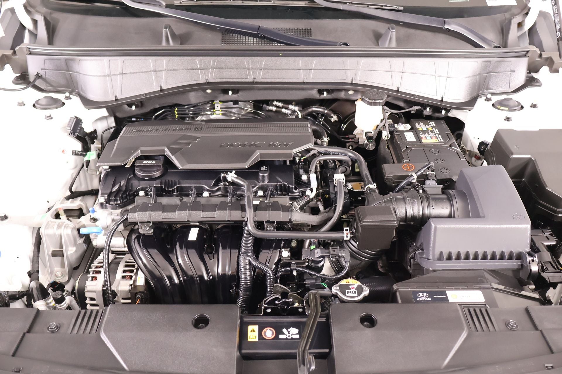 THIS VEHICLE COMES EQUIPPED WITH THE FOLLOWING OPTIONS AND FEATURES: Option Group 01, 4-Wheel Disc Brakes, 6 Speakers, ABS brakes, Air Conditioning, Alloy wheels, AM/FM radio: SiriusXM, Apple CarPlay & Android Auto, Auto High-beam Headlights, Automatic temperature control, Brake assist, Bumpers: body-color, Cloth Seat Trim, Delay-off headlights, Driver door bin, Driver vanity mirror, Dual front impact airbags, Dual front side impact airbags, Electronic Stability Control, Emergency communication system: Bluelink+, Exterior Parking Camera Rear, Front anti-roll bar, Front Bucket Seats, Front Center Armrest, Front dual zone A/C, Front reading lights, Front wheel independent suspension, Fully automatic headlights, Heated door mirrors, Illuminated entry, Leather steering wheel, Low tire pressure warning, Occupant sensing airbag, Outside temperature display, Overhead airbag, Panic alarm, Passenger door bin, Passenger vanity mirror, Power door mirrors, Power driver seat, Power steering, Power windows, Radio: AM/FM/HD Radio/SiriusXM Audio System, Rear seat center armrest, Rear window defroster, Rear window wiper, Remote keyless entry, Security system, Speed control, Speed-sensing steering, Split folding rear seat, Spoiler, Steering wheel mounted audio controls, Tachometer, Telescoping steering wheel, Tilt steering wheel, Traction control, Trip computer, Turn signal indicator mirrors, Variably intermittent wipers, and Wheels: 18 x 7.0J Glossy Black Alloy.