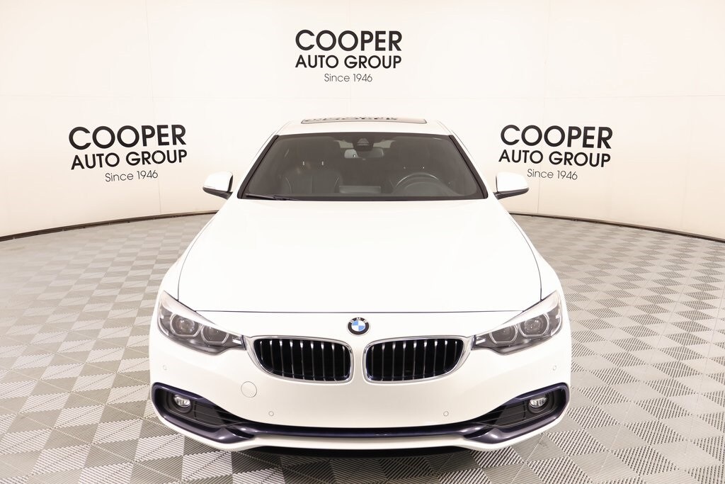2019 BMW 4 Series Cooper Certified Certified, Front dual zone A/C, Hands-Free Bluetooth & USB Audio Connection, HD Radio, Head-Up Display, Hi-Fi Sound System, Memory seat, Navigation System, Power moonroof, Remote keyless entry, 4-Wheel Disc Brakes, 9 Speakers, ABS brakes, Active Blind Spot Detection, Active Driving Assistant, Air Conditioning, Alloy wheels, AM/FM Radio, AM/FM radio: SiriusXM, Anti-whiplash front head restraints, Apple CarPlay, Apple CarPlay Compatibility, Auto-dimming door mirrors, Auto-dimming Rear-View mirror, Automatic temperature control, Brake assist, Bumpers: body-color, Delay-off headlights, Driver door bin, Driver vanity mirror, Dual front impact airbags, Dual front side impact airbags, Electronic Stability Control, Emergency communication system: BMW Assist eCall, Exterior Parking Camera Rear, Four wheel independent suspension, Front anti-roll bar, Front Bucket Seats, Front Center Armrest, Front fog lights, Front reading lights, Fully automatic headlights, Garage door transmitter, Genuine wood console insert, Genuine wood dashboard insert, Genuine wood door panel insert, Heated door mirrors, Heated Front Seats, Illuminated entry, Instrument Cluster w/Extended Contents, Knee airbag, Leather Shift Knob, Leather steering wheel, Low tire pressure warning, Lumbar Support, Occupant sensing airbag, Outside temperature display, Overhead airbag, Panic alarm, Passenger door bin, Passenger vanity mirror, Power door mirrors, Power driver seat, Power Front Seats, Power passenger seat, Power steering, Power windows, Radio data system, Rain sensing wipers, Rear air conditioning, Rear anti-roll bar, Rear reading lights, Rear seat center armrest, Rear window defroster, Security system, SensaTec Leatherette Upholstery, SiriusXM Satellite Radio, Speed control, Speed Limit Information, Speed-sensing steering, Speed-Sensitive Wipers, Split folding rear seat, Sport Seats, Sport steering wheel, Steering wheel mounted audio controls, Tachometer, Telescoping steering wheel, Tilt steering wheel, Traction control, Trip computer, Turn signal indicator mirrors, Variably intermittent wipers, Wheels: 18" x 8" Double-Spoke (Style 397), and Wheels: 19" x 8" Star-Spoke (Style 407).