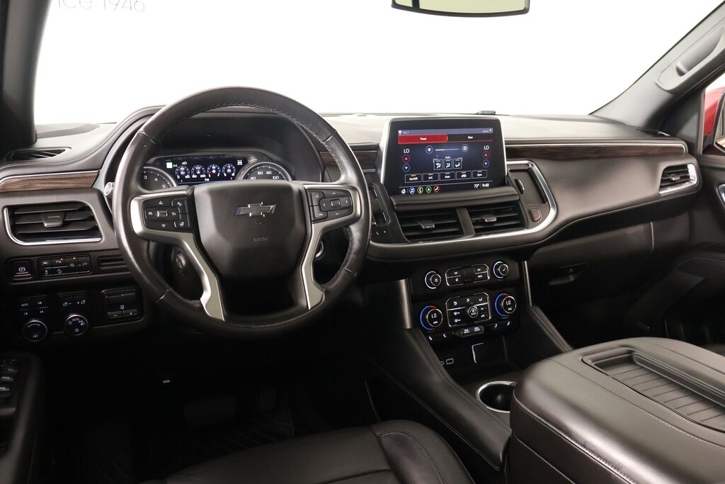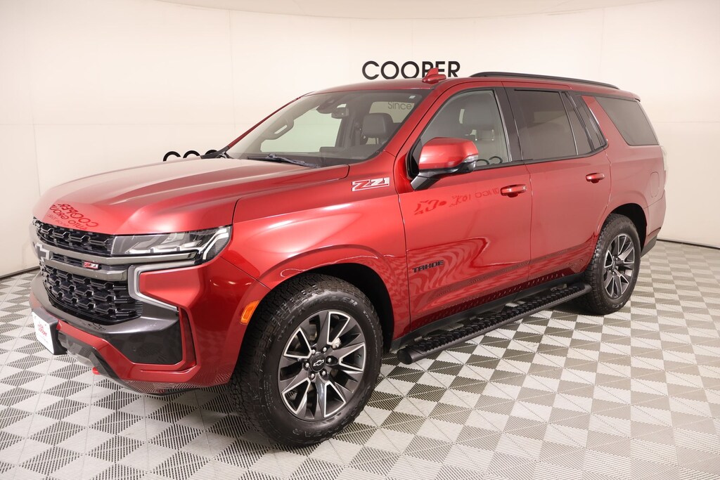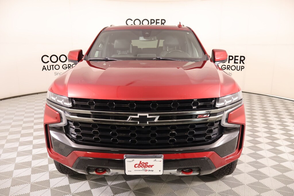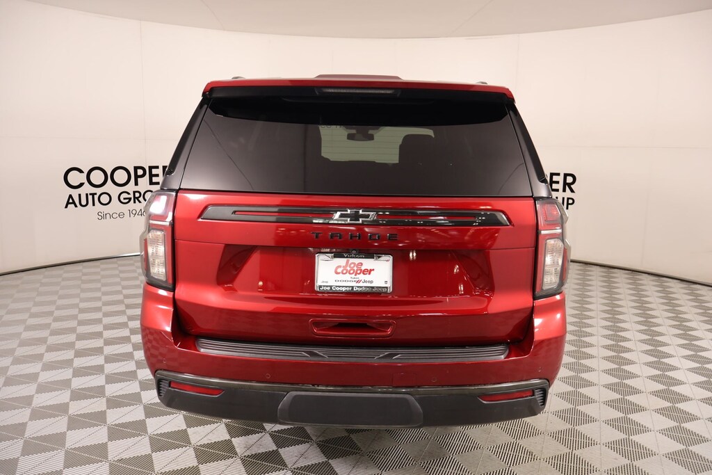 Joe Cooper Chrysler Dodge Jeep Ram of Yukon **405-265-1400** Cherry Red Tintcoat 2021 Chevrolet Tahoe Z71 4WD EcoTec3 5.3L V8 THIS VEHICLE COMES EQUIPPED WITH THE FOLLOWING OPTIONS AND FEATURES: Advanced Trailering Package (Advanced Trailering System, Hitch Guidance w/Hitch View, and Integrated Trailer Brake Controller), Driver Alert Package (Front & Rear Park Assist, Lane Change Alert w/Side Blind Zone Alert, Lane Keep Assist w/Lane Departure Warning, and Rear Cross Traffic Alert), License Plate Front Mounting Package, Luxury Package (2nd Row Pwr Release 60/40 Split-Folding Bench Seat, 3rd Row 60/40 Power-Folding Split-Bench Seat, Automatic Heated Steering Wheel, HD Surround Vision, Heated 2nd Row Outboard Seats, Memory Settings, Outside Heated Power-Adjustable Mirrors, Power Tilt & Telescopic Steering Column, and Rear Pedestrian Alert), Max Trailering Package (Extra Capacity Cooling System), Off-Road Capability Package (Air Ride Adaptive Suspension, Enhanced Driver Information Center, and Magnetic Ride Control Suspension), Preferred Equipment Group 2Z7 (1st & 2nd Row Color-Keyed Carpeted Floor Mats, 2 USB Data Ports, 2-Speed Active Electronic AutoTrac Transfer Case, Auto-Dimming Inside Rear-View Mirror, Black Tubular Assist Steps, Bright Front & Rear Door Sill Plates, Color-Keyed Carpeting Floor Covering, Driver & Front Outboard Passenger Airbags, Floor Console w/Storage Area, Front High-Approach Angle Fascia, Hands-Free Rear Power Programmable Liftgate, HD Radio, Hill Descent Control, Infotainment Display, Leather-Wrapped Steering Wheel, LED Daytime Running Lamps, Memory Settings for Driver, Red Horizontal-Mounted Recovery Hooks, Remote Start, SiriusXM Radio w/360L, and Universal Home Remote), Rear Media & Nav Package (Radio: Chevrolet Infotainment 3 Premium System, Rear Seat Media System, and SiriusXM NavTraffic), 4WD, Jet Black Leather, 4-Wheel Disc Brakes, ABS brakes, Air Conditioning, Auto High-beam Headlights, Delay-off headlights, Driver vanity mirror, Dual-Pane Power Panoramic Sunroof, Front anti-roll bar, Front dual zone A/C, Front reading lights, Garage door transmitter, Overhead airbag, Overhead console, Panic alarm, Rain sensing wipers, Rear air conditioning, Rear anti-roll bar, Rear window defroster, Rear window wiper, Roof rack: rails only, Security system, Variably intermittent wipers, 10-Way Power Driver & Passenger Seat Adjusters, 3.23 Rear Axle Ratio, 3rd row seats: split-bench, 9 Speakers, All-Weather Cargo Mat (LPO), Alloy wheels, AM/FM radio: SiriusXM with 360L, Apple CarPlay/Android Auto, Auto-dimming Rear-View mirror, Automatic temperature control, Bose 9-Speaker Stereo Audio System Feature, Brake assist, Bumpers: body-color, Compass, Driver door bin, Dual front impact airbags, Dual front side impact airbags, Electronic Stability Control, Emergency communication system: OnStar and Chevrolet connected services capable, Floor Console, Four wheel independent suspension, Front Bucket Seats, Front Center Armrest, Front High-Back Reclining Bucket Seats, Fully automatic headlights, Heated door mirrors, Heated Driver & Front Passenger Seats, Heated front seats, Illuminated entry, Leather Seat Trim, Leather steering wheel, Low tire pressure warning, Memory seat, Occupant sensing airbag, Outside temperature display, Passenger door bin, Passenger vanity mirror, Power door mirrors, Power driver seat, Power Liftgate, Power passenger seat, Power Release 2nd Row Bucket Seats, Power steering, Power windows, Premium audio system: Chevrolet Infotainment 3, Premium Smooth Ride Suspension, Radio: Chevrolet Infotainment 3 Plus System, Rear reading lights, Rear seat center armrest, Remote keyless entry, Set of 4 Wheel Locks (LPO), Speed control, Speed-sensing steering, Split folding rear seat, Spoiler, Steering wheel mounted audio controls, Tachometer, Telescoping steering wheel, Tilt steering wheel, Traction control, Trip computer, Voltmeter, and Wheels: 20" x 9" Machined Aluminum. Recent Arrival! NO ACCIDENT HISTORY ON CA