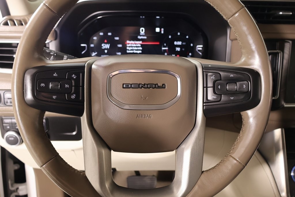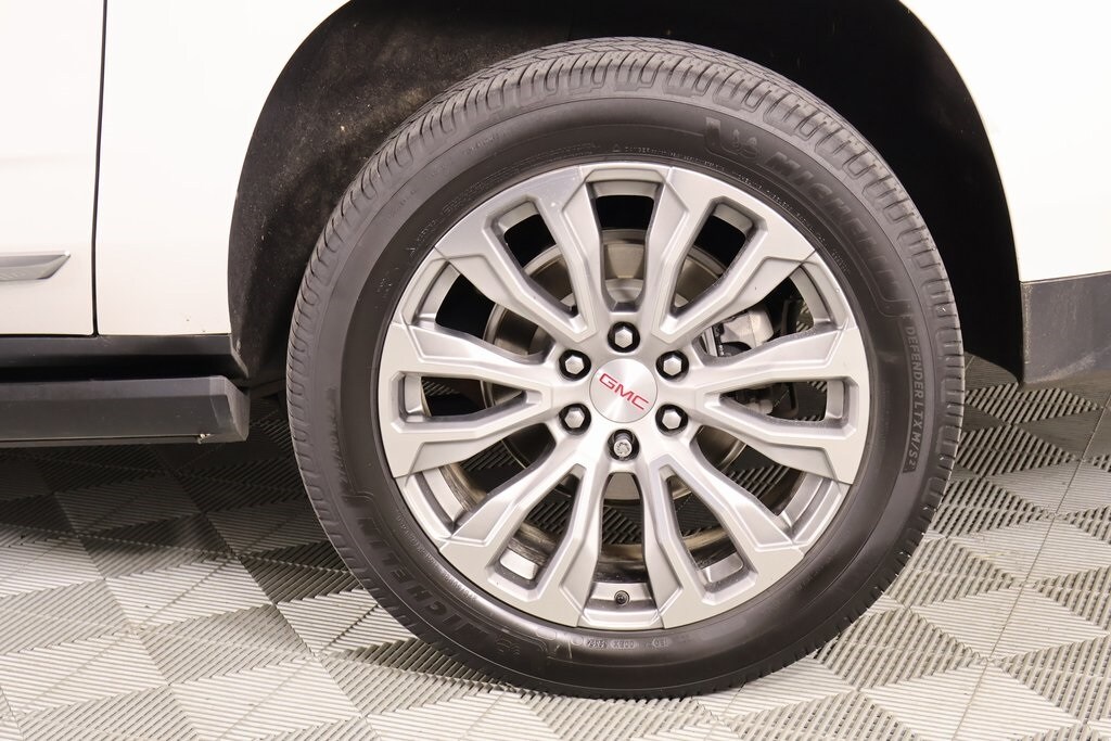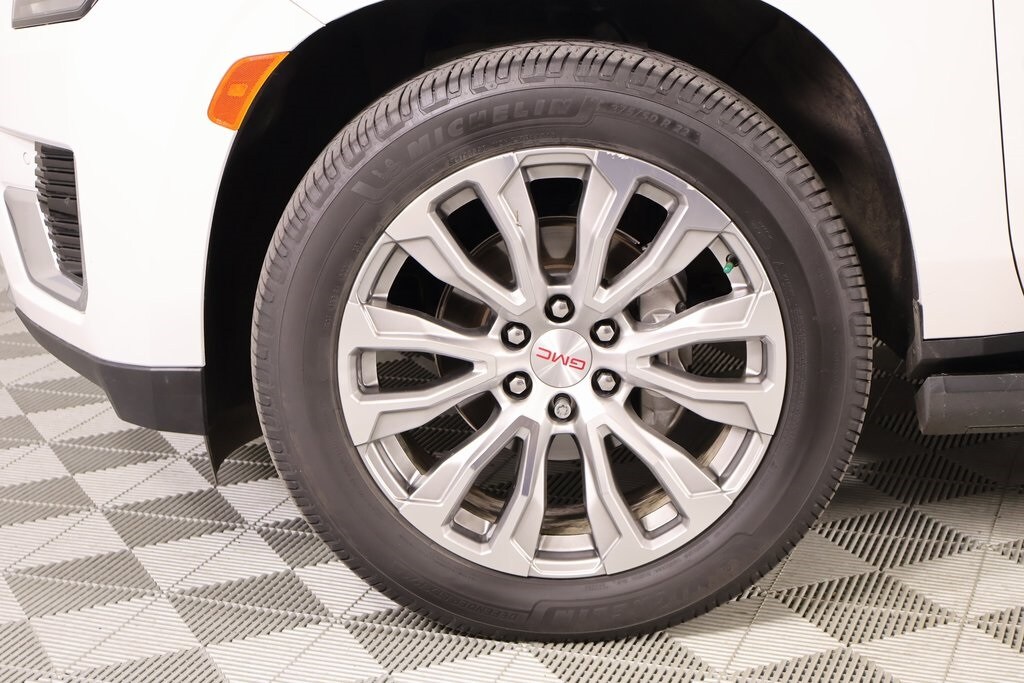 THIS VEHICLE COMES EQUIPPED WITH THE FOLLOWING OPTIONS AND FEATURES: License Plate Front Mounting Package, Preferred Equipment Group 5SA (15" Diagonal Multi-Color Head-Up Display, 2 Presets For Outside Rearview Mirrors, 3 Years of GMC Connected Services, 3rd Row 60/40 Power-Folding Split-Bench Seat, Automatic Stop/Start, Bright Front & Rear Door Sill Plates, Chrome Door Handles w/Body-Color Strip, Dual Exhaust System, Floor Console, Galvano Bodyside Moldings, Hands-Free Power Programmable Rear Liftgate, HD Surround Vision, Heated & Ventilated Driver & Front Passenger Seats, Heated 2nd Row Outboard Position Seats, Heated Driver & Front Passenger Seats, Heated Steering Wheel, Hill Descent Control, Inside Rear-View Auto-Dimming Mirror, Outside Heated Power-Adjustable Mirrors, Power Release 2nd Row Bucket Seats, Power Tilt & Telescopic Steering Column, Rear Pedestrian Alert, Safety Alert Seat, Start/Stop System Disable Button, Universal Home Remote, and Wireless Charging), 4WD, 14 Speakers, 3.23 Rear Axle Ratio, 3rd row seats: split-bench, 4-Wheel Disc Brakes, ABS brakes, Adaptive suspension, Air Conditioning, Alloy wheels, AM/FM radio: SiriusXM with 360L, AM/FM Stereo, Apple CarPlay/Android Auto, Auto High-beam Headlights, Auto-dimming door mirrors, Auto-dimming Rear-View mirror, Auto-leveling suspension, Automatic Emergency Braking, Automatic temperature control, Bodyside moldings, Bose 14-Speaker Surround w/CenterPoint, Brake assist, Bumpers: body-color, Compass, Delay-off headlights, Driver door bin, Driver vanity mirror, Dual front impact airbags, Dual front side impact airbags, Electronic Stability Control, Emergency communication system: OnStar and GMC Connected Services capable, Following Distance Indicator, Forward Collision Alert, Four wheel independent suspension, Front & Rear Park Assist, Front anti-roll bar, Front Bucket Seats, Front Center Armrest, Front dual zone A/C, Front fog lights, Front Pedestrian Braking, Front reading lights, Fully automatic headlights, Garage door transmitter, Heads-Up Display, Heated door mirrors, Heated front seats, Heated rear seats, Heated steering wheel, Illuminated entry, IntelliBeam Automatic High Beam On/Off, Lane Change Alert w/Side Blind Zone Alert, Lane Keep Assist w/Lane Departure Warning, Leather steering wheel, Low tire pressure warning, Magnetic Ride Control Suspension, Memory seat, Navigation System, Not Equipped w/4-Way Driver & Fr Pass Pwr Lumbar, Not Equipped w/Fr & Rr Pk Assist/Rev Auto Braking, Not Equipped w/Steering Column Lock, Occupant sensing airbag, Outside temperature display, Overhead airbag, Overhead console, Panic alarm, Passenger door bin, Passenger vanity mirror, Perforated Leather Seating Surfaces, Power door mirrors, Power driver seat, Power Liftgate, Power passenger seat, Power steering, Power windows, Power-Retractable Assist Steps, Rain sensing wipers, Rear air conditioning, Rear anti-roll bar, Rear Cross Traffic Alert, Rear reading lights, Rear window defroster, Rear window wiper, Remote keyless entry, Roof rack: rails only, Security system, SiriusXM w/360L, Speed control, Speed-sensing steering, Split folding rear seat, Spoiler, Steering wheel memory, Steering wheel mounted audio controls, Tachometer, Telescoping steering wheel, Tilt steering wheel, Traction control, Trip computer, Turn signal indicator mirrors, Variably intermittent wipers, Ventilated front seats, Voltmeter, Wheel Locks (Set of 4) (LPO), Wheels: 20" x 9" 6-Spoke Polished Aluminum, and Wheels: 22" x 9" Bright Machined Aluminum.