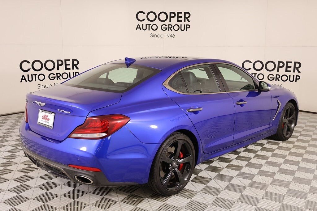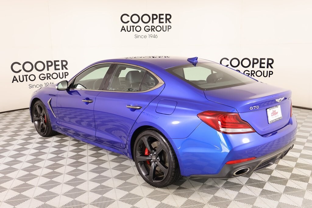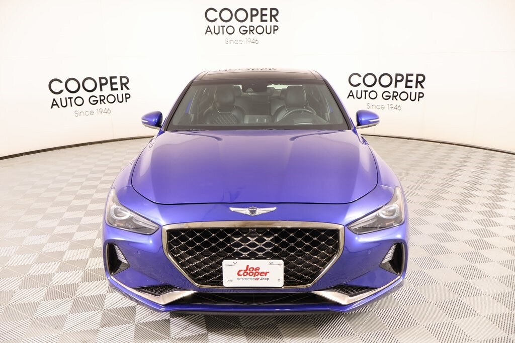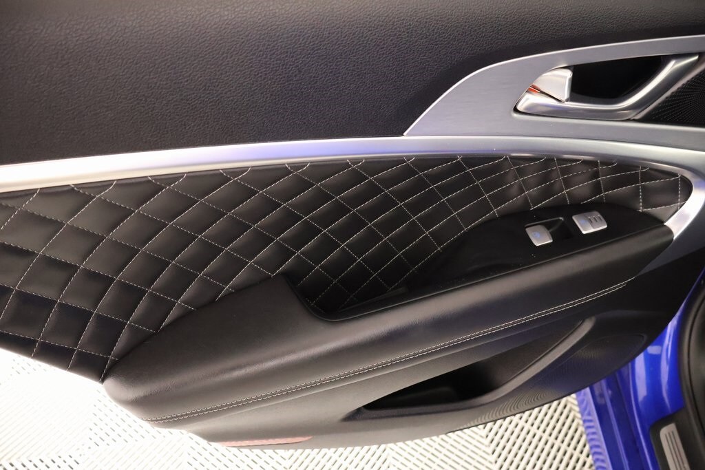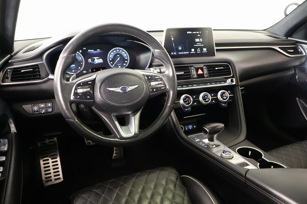 2021 Genesis G70 Option Group 07 w/Sport Package (Heads-Up Display (HUD), Heated Rear Seats, Microfiber Suede Headliner, Power Trunk, and Surround View Monitor (SVM)), Prestige Package, Sport Package, Cooper Certified Certified, Front dual zone A/C, Navigation System, Radio: AM/FM/SiriusXM/HD Lexicon Audio System, 15 Speakers, 4-Wheel Disc Brakes, ABS brakes, Air Conditioning, Alloy wheels, AM/FM radio: SiriusXM, Android Auto & Apple CarPlay, Anti-whiplash front head restraints, Auto High-beam Headlights, Auto-dimming door mirrors, Auto-dimming Rear-View mirror, Automatic temperature control, Brake assist, Bumpers: body-color, Delay-off headlights, Driver door bin, Driver vanity mirror, Dual front impact airbags, Dual front side impact airbags, Electronic Stability Control, Emergency communication system: Genesis Connected Services, Exterior Parking Camera Rear, Four wheel independent suspension, Front anti-roll bar, Front Bucket Seats, Front Center Armrest, Front Passenger Seat Walk-In Device, Front reading lights, Fully automatic headlights, Garage door transmitter: HomeLink, Heated & Ventilated Multi-Adj Front Bucket Seats, Heated door mirrors, Heated front seats, Heated steering wheel, Illuminated entry, Integrated Memory System (IMS), Knee airbag, Leather Seating Surfaces, Low tire pressure warning, Memory seat, Occupant sensing airbag, Outside temperature display, Overhead airbag, Overhead console, Panic alarm, Passenger door bin, Passenger vanity mirror, Power door mirrors, Power driver seat, Power moonroof, Power passenger seat, Power steering, Power windows, Rain sensing wipers, Rear anti-roll bar, Rear reading lights, Rear seat center armrest, Rear window defroster, Remote keyless entry, Security system, Speed control, Speed-Sensitive Wipers, Split folding rear seat, Steering wheel memory, Steering wheel mounted audio controls, Tachometer, Telescoping steering wheel, Tilt steering wheel, Traction control, Trip computer, Turn signal indicator mirrors, Variably intermittent wipers, Ventilated front seats, and Wheels: 19" x 8.0J Fr & 19" x 8.5J Rr Alloy.