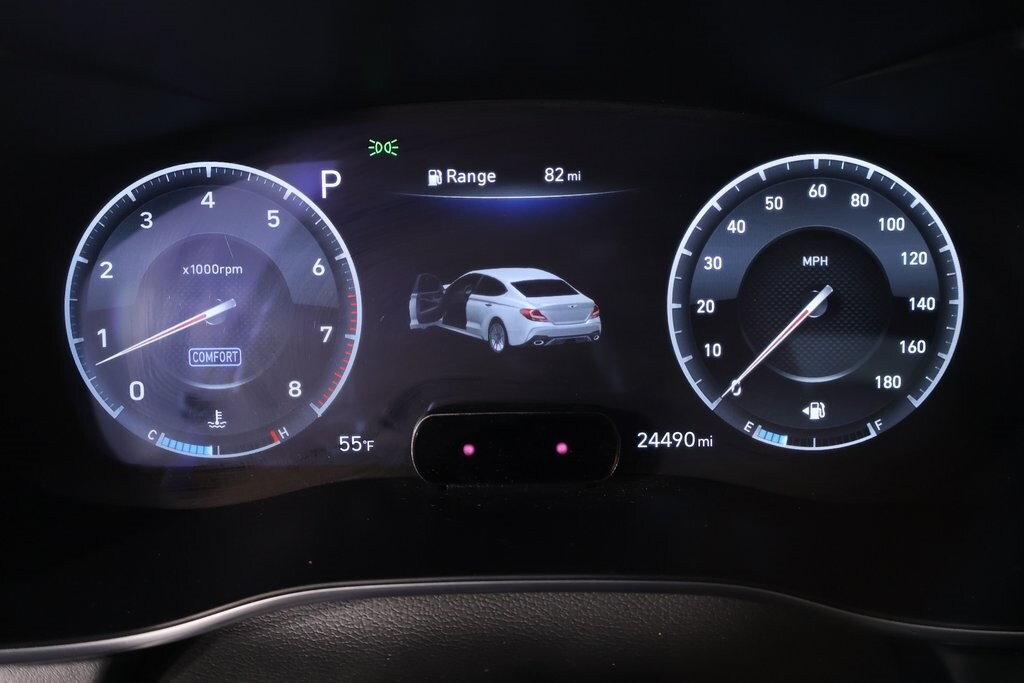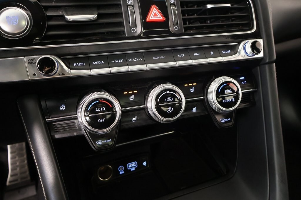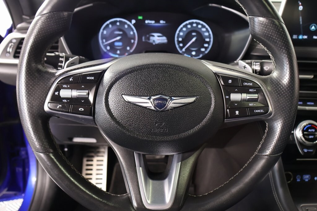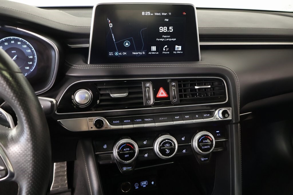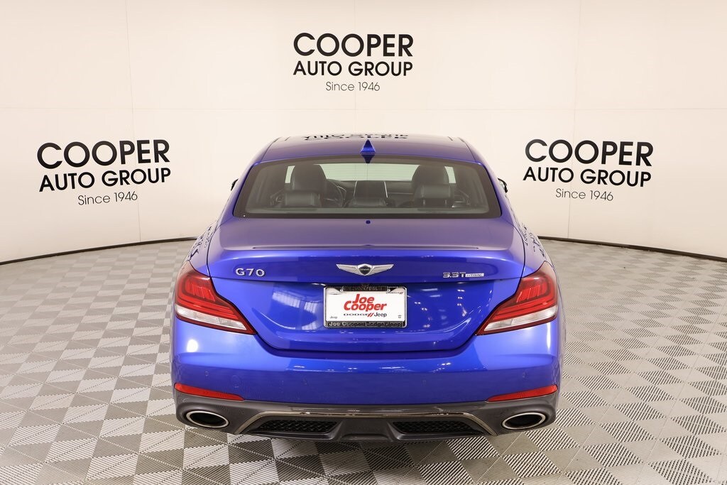 2021 Genesis G70 Option Group 07 w/Sport Package (Heads-Up Display (HUD), Heated Rear Seats, Microfiber Suede Headliner, Power Trunk, and Surround View Monitor (SVM)), Prestige Package, Sport Package, Cooper Certified Certified, Front dual zone A/C, Navigation System, Radio: AM/FM/SiriusXM/HD Lexicon Audio System, 15 Speakers, 4-Wheel Disc Brakes, ABS brakes, Air Conditioning, Alloy wheels, AM/FM radio: SiriusXM, Android Auto & Apple CarPlay, Anti-whiplash front head restraints, Auto High-beam Headlights, Auto-dimming door mirrors, Auto-dimming Rear-View mirror, Automatic temperature control, Brake assist, Bumpers: body-color, Delay-off headlights, Driver door bin, Driver vanity mirror, Dual front impact airbags, Dual front side impact airbags, Electronic Stability Control, Emergency communication system: Genesis Connected Services, Exterior Parking Camera Rear, Four wheel independent suspension, Front anti-roll bar, Front Bucket Seats, Front Center Armrest, Front Passenger Seat Walk-In Device, Front reading lights, Fully automatic headlights, Garage door transmitter: HomeLink, Heated & Ventilated Multi-Adj Front Bucket Seats, Heated door mirrors, Heated front seats, Heated steering wheel, Illuminated entry, Integrated Memory System (IMS), Knee airbag, Leather Seating Surfaces, Low tire pressure warning, Memory seat, Occupant sensing airbag, Outside temperature display, Overhead airbag, Overhead console, Panic alarm, Passenger door bin, Passenger vanity mirror, Power door mirrors, Power driver seat, Power moonroof, Power passenger seat, Power steering, Power windows, Rain sensing wipers, Rear anti-roll bar, Rear reading lights, Rear seat center armrest, Rear window defroster, Remote keyless entry, Security system, Speed control, Speed-Sensitive Wipers, Split folding rear seat, Steering wheel memory, Steering wheel mounted audio controls, Tachometer, Telescoping steering wheel, Tilt steering wheel, Traction control, Trip computer, Turn signal indicator mirrors, Variably intermittent wipers, Ventilated front seats, and Wheels: 19" x 8.0J Fr & 19" x 8.5J Rr Alloy.