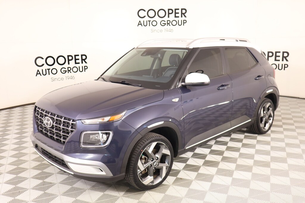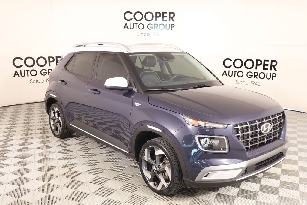 THIS VEHICLE COMES EQUIPPED WITH THE FOLLOWING OPTIONS AND FEATURES: Option Group 01, 4-Wheel Disc Brakes, 6 Speakers, 6.483 Axle Ratio, 6.5J x 17" Alloy Wheels, ABS brakes, Air Conditioning, Alloy wheels, AM/FM radio: SiriusXM, Apple CarPlay & Android Auto, Auto High-beam Headlights, Automatic temperature control, Brake assist, Bumpers: body-color, Cargo Net, Cargo Tray, Carpeted Floor Mats, Cloth Seat Trim, Delay-off headlights, Driver door bin, Driver vanity mirror, Dual front impact airbags, Dual front side impact airbags, Electronic Stability Control, Emergency communication system, Front anti-roll bar, Front Bucket Seats, Front Center Armrest, Front reading lights, Front wheel independent suspension, Fully automatic headlights, Heated door mirrors, Heated Front Bucket Seats, Heated front seats, Illuminated entry, Leather Shift Knob, Leather steering wheel, Low tire pressure warning, Navigation System, Occupant sensing airbag, Outside temperature display, Overhead airbag, Overhead console, Panic alarm, Passenger door bin, Passenger vanity mirror, Power door mirrors, Power steering, Power windows, Radio: AM/FM/HD/SiriusXM Display Audio, Rear window defroster, Rear window wiper, Remote keyless entry, Roof rack: rails only, Security system, Speed control, Speed-sensing steering, Split folding rear seat, Spoiler, Steering wheel mounted audio controls, Tachometer, Telescoping steering wheel, Tilt steering wheel, Traction control, Trip computer, and Variably intermittent wipers. Denim w/White Roof 2022 Hyundai Venue Limited FWD I4 REAR VIEW CAMERA, KEYLESS ENTRY, Cooper Certified.
