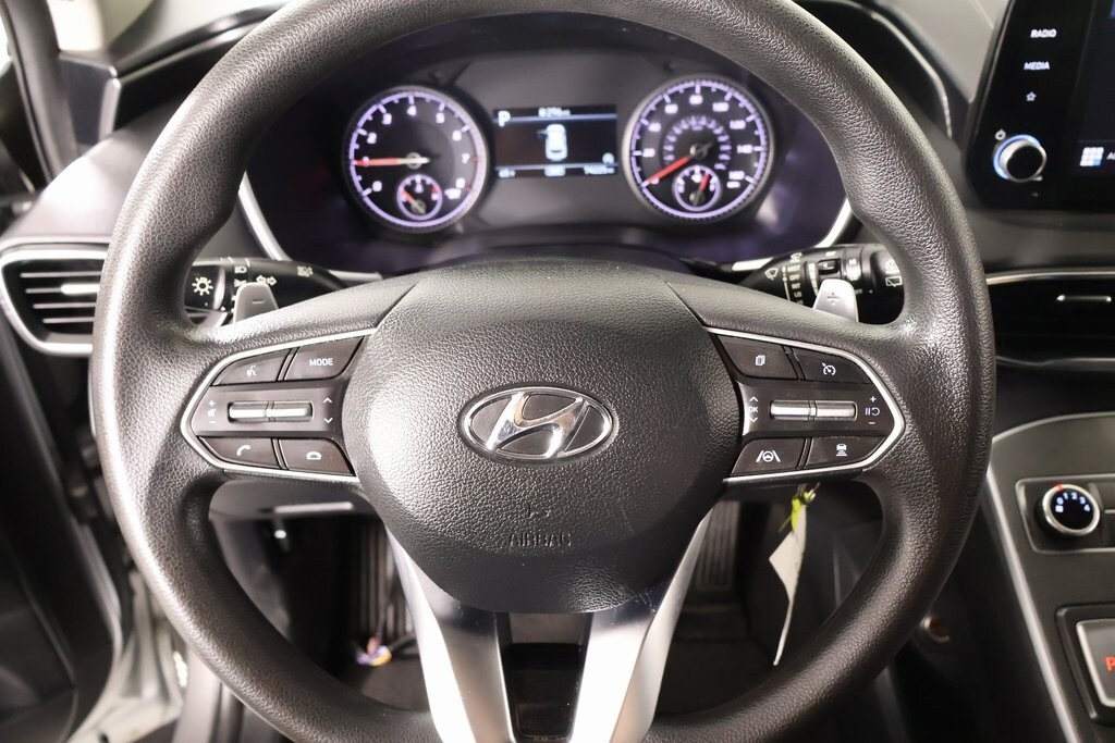 2023 Hyundai Santa Fe Option Group 01, Cooper Certified Certified, AWD, Black Cloth, Air Conditioning, Radio: AM/FM Display Audio, Remote keyless entry, 18" x 7.5J Alloy Wheels, 4-Wheel Disc Brakes, 6 Speakers, ABS brakes, Alloy wheels, AM/FM radio, Apple CarPlay & Android Auto, Auto High-beam Headlights, Axle Ratio: 4.081, Brake assist, Bumpers: body-color, Delay-off headlights, Driver door bin, Driver vanity mirror, Dual front impact airbags, Dual front side impact airbags, Electronic Stability Control, Exterior Parking Camera Rear, Four wheel independent suspension, Front anti-roll bar, Front Bucket Seats, Front Center Armrest, Front reading lights, Fully automatic headlights, Illuminated entry, Low tire pressure warning, Occupant sensing airbag, Outside temperature display, Overhead airbag, Overhead console, Panic alarm, Passenger door bin, Passenger vanity mirror, Power door mirrors, Power steering, Power windows, Rear anti-roll bar, Rear seat center armrest, Rear window defroster, Rear window wiper, Security system, Speed control, Speed-sensing steering, Split folding rear seat, Spoiler, Stain-Resistant Cloth Seat Trim, Steering wheel mounted audio controls, Tachometer, Telescoping steering wheel, Tilt steering wheel, Traction control, Trip computer, and Variably intermittent wipers.