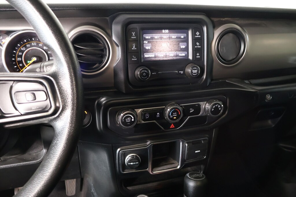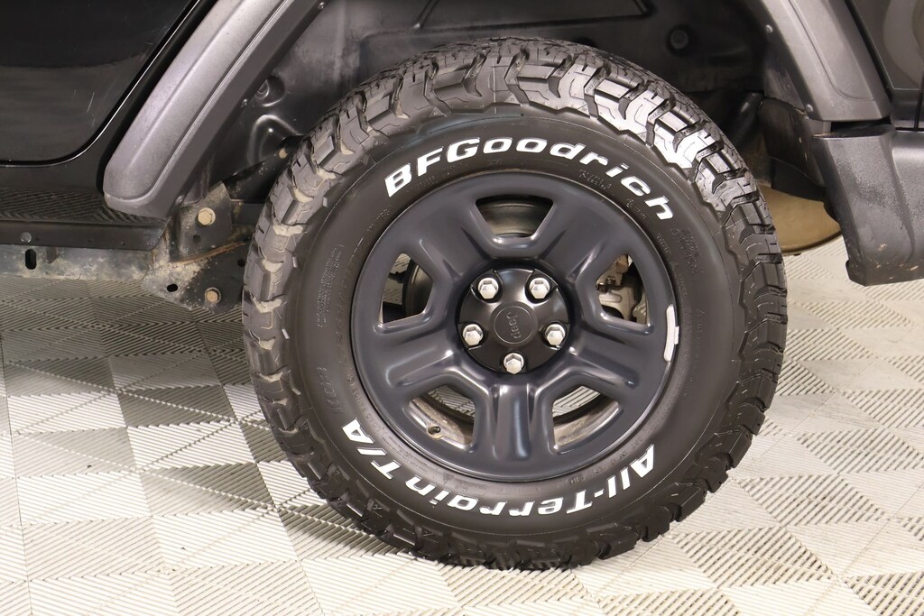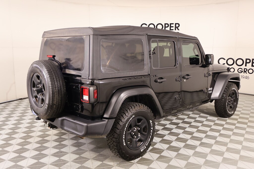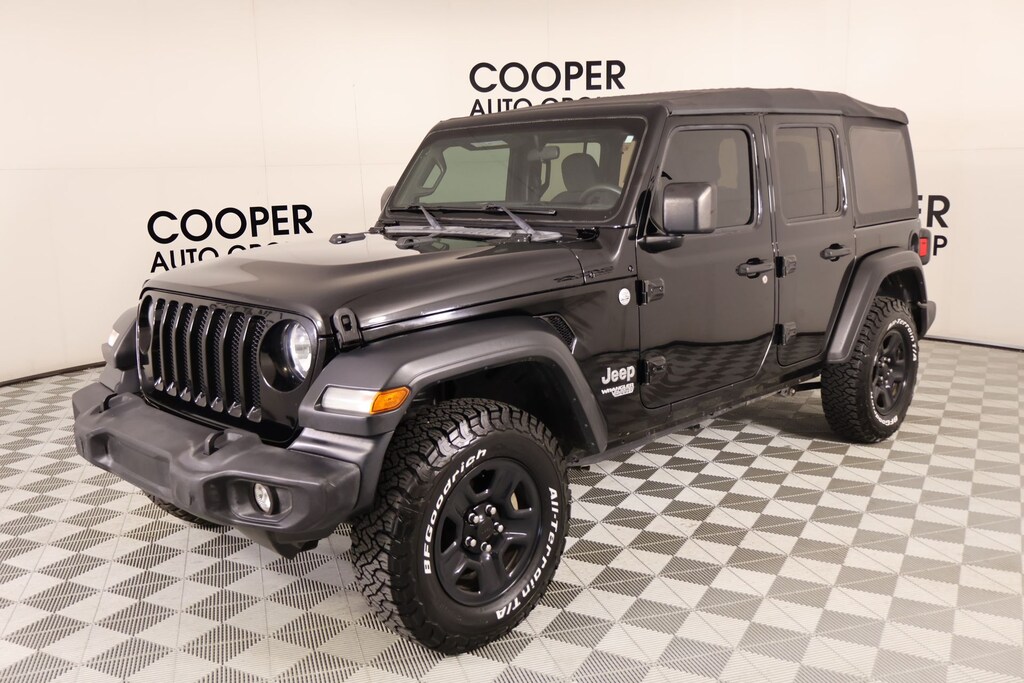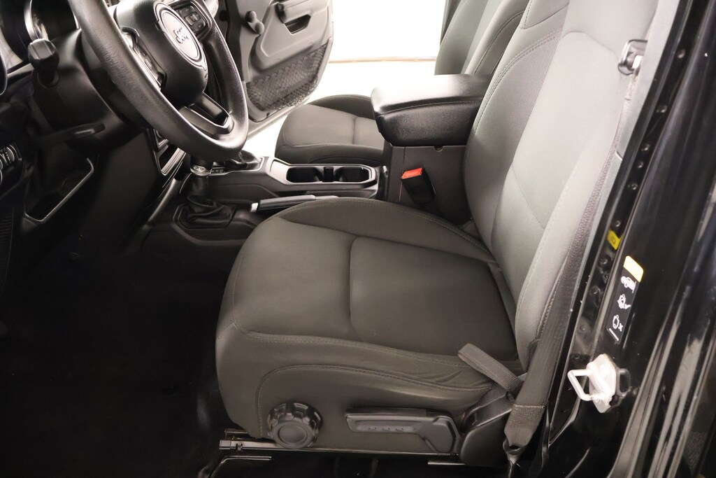 Bluetooth, Apple CarPlay, Android Auto, Back Up Camera, Wrangler Unlimited Sport, 4D Sport Utility, 2.0L I4 DOHC, 8-Speed Automatic, 4WD, Black Clearcoat, Black Cloth, 1-Year SiriusXM Radio Service, 3.45 Rear Axle Ratio, 4-Wheel Disc Brakes, 8 Speakers, ABS brakes, Air Conditioning, AM/FM radio, Aux Battery, Brake assist, Cloth Low-Back Bucket Seats, Compass, Deep Tint Sunscreen Windows, Delay-off headlights, Driver door bin, Driver vanity mirror, Dual front impact airbags, Dual front side impact airbags, Electronic Stability Control, Front anti-roll bar, Front Bucket Seats, Front Center Armrest w/Storage, Front fog lights, Front reading lights, Integrated roll-over protection, Integrated Voice Command w/Bluetooth, Low tire pressure warning, Non-Lock Fuel Cap w/o Discriminator, Normal Duty Suspension, Occupant sensing airbag, Outside temperature display, ParkView Rear Back-Up Camera, Passenger door bin, Passenger vanity mirror, Power steering, Quick Order Package 22B Sport, Radio data system, Radio: Uconnect 3 w/5" Display, Rear anti-roll bar, Rear reading lights, SiriusXM Satellite Radio, Speed control, Split folding rear seat, Steering wheel mounted audio controls, Stop-Start Dual Battery System, Tachometer, Telescoping steering wheel, Tilt steering wheel, Traction control, Trip computer, Variably intermittent wipers, Wheels: 17" x 7.5" Black Steel Styled.