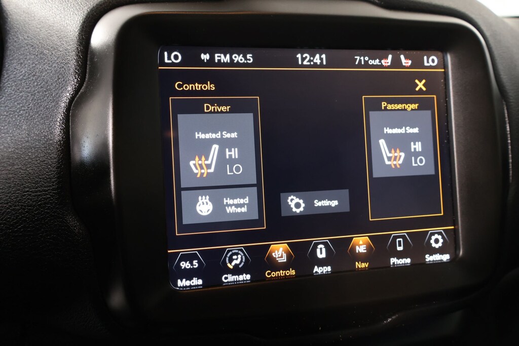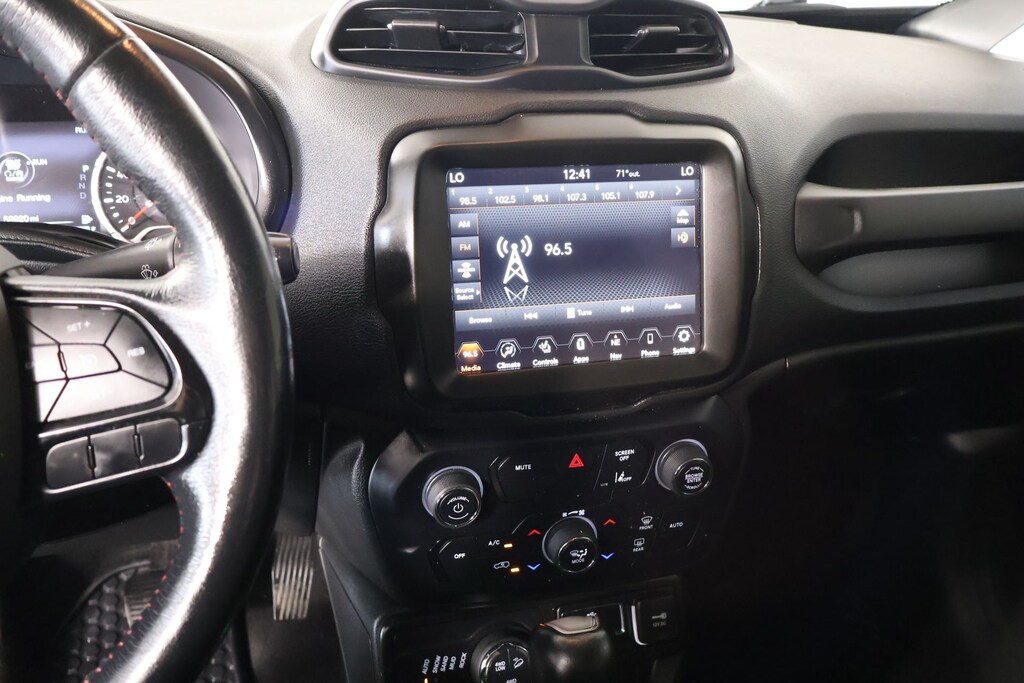 2022 Jeep Renegade Quick Order Package 22C, Cooper Certified Certified, Body Color Roof, Front dual zone A/C, Navigation System, Radio: Uconnect 4C Nav w/8.4" Display, Remote keyless entry, 17" x 6.5" Aluminum Wheels, 4-Wheel Disc Brakes, 4.585 Final Drive Ratio, 6 Speakers, ABS brakes, Air Conditioning, Alloy wheels, AM/FM radio: SiriusXM, Anti-whiplash front head restraints, Apple CarPlay/Android Auto, Auto-dimming Rear-View mirror, Automatic temperature control, Brake assist, Compass, Delay-off headlights, Driver door bin, Driver vanity mirror, Dual front impact airbags, Dual front side impact airbags, Electronic Stability Control, Emergency communication system: SiriusXM Guardian, Four wheel independent suspension, Front anti-roll bar, Front Bucket Seats, Front Center Armrest, Front fog lights, Front reading lights, Fully automatic headlights, Heated door mirrors, Heated front seats, Heated steering wheel, Illuminated entry, Knee airbag, Leather Shift Knob, Leather steering wheel, Low tire pressure warning, Normal Duty Suspension, Occupant sensing airbag, Outside temperature display, Overhead airbag, Panic alarm, ParkView Rear Back-Up Camera, Passenger door bin, Passenger vanity mirror, Power door mirrors, Power driver seat, Power steering, Power windows, Premium Cloth Low-Back Bucket Seats, Radio data system, Rain sensing wipers, Rear anti-roll bar, Rear seat center armrest, Rear window defroster, Rear window wiper, Roof rack: rails only, Security system, Speed control, Split folding rear seat, Spoiler, Steering wheel mounted audio controls, Tachometer, Telescoping steering wheel, Tilt steering wheel, Traction control, Trip computer, Turn signal indicator mirrors, Variably intermittent wipers, and Voltmeter.