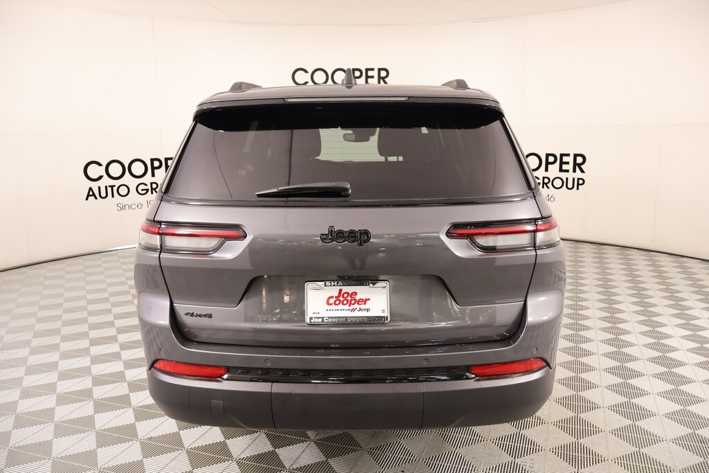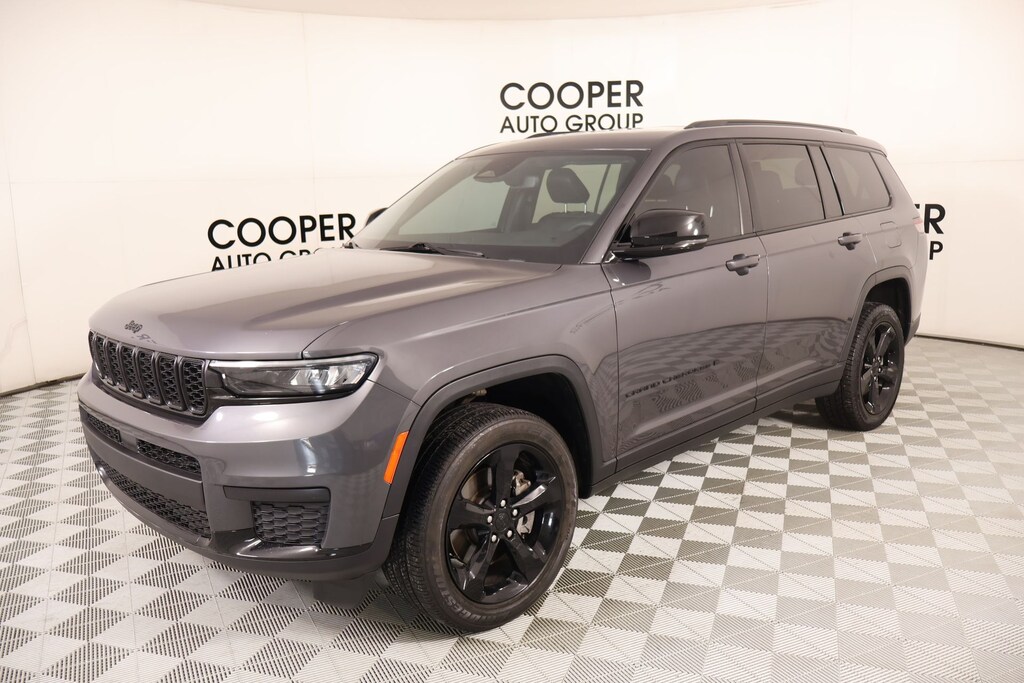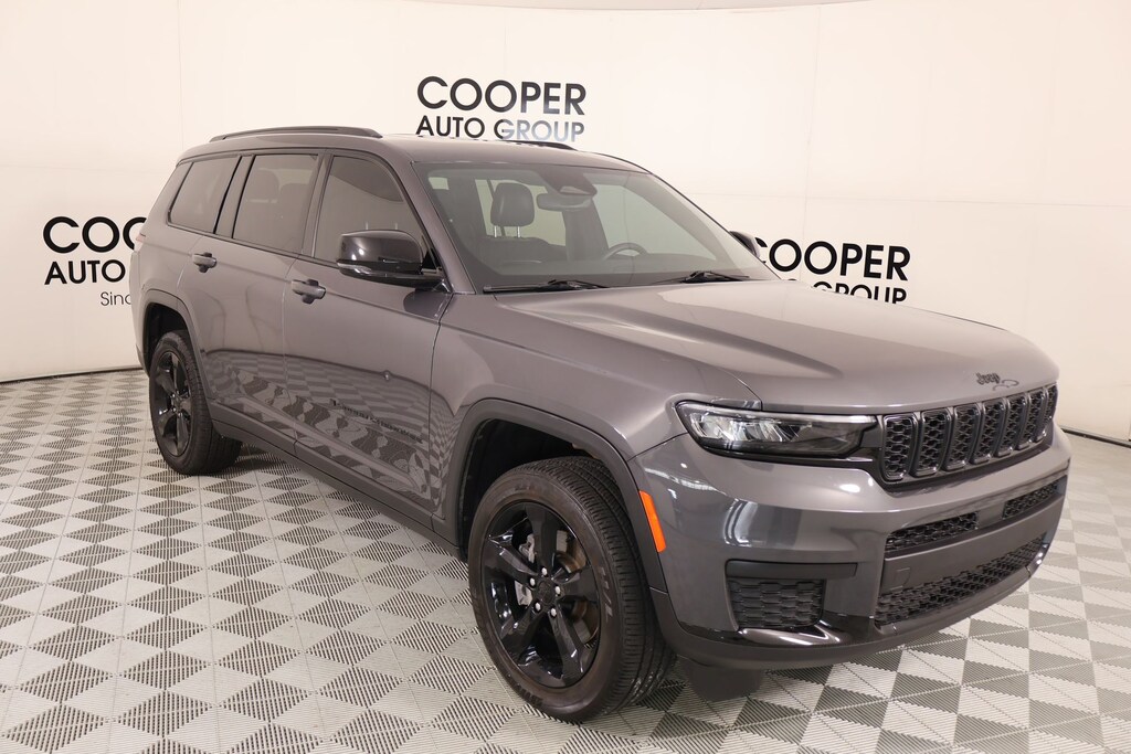 2024 Jeep Grand Cherokee L Quick Order Package 23M Altitude X (115V Auxiliary Power Outlet, 3rd Row Charge-Only USB Ports, Altitude X, Black Headliner, Capri Leatherette/Suede Seats, Delete Laredo Badge, Gloss Black Exterior Accents, Heated Front Seats, Heated Steering Wheel, Power Liftgate, Power Sunroof, Rain Sensitive Windshield Wipers, Remote Start System, Selectable Tire Fill Alert, Wheels: 18" x 8.0" Fully Painted Aluminum 1, and Wireless Charging Pad), Cooper Certified Certified, Front dual zone A/C, Power windows, Radio: Uconnect 5 w/8.4" Display, Remote keyless entry, 3.45 Rear Axle Ratio, 3rd row seats: split-bench, 4-Wheel Disc Brakes, 6 Speakers, ABS brakes, Air Conditioning, Alloy wheels, Anti-whiplash front head restraints, Automatic temperature control, Brake assist, Bumpers: body-color, Cloth Seats, Compass, Delay-off headlights, Driver door bin, Driver vanity mirror, Dual front impact airbags, Dual front side impact airbags, Electronic Stability Control, Emergency communication system, Four wheel independent suspension, Front anti-roll bar, Front Bucket Seats, Front Center Armrest w/Storage, Front reading lights, Fully automatic headlights, Heated door mirrors, Illuminated entry, Knee airbag, Low tire pressure warning, Manual Fold Seatbacks, Normal Duty Suspension, Occupant sensing airbag, Outside temperature display, Overhead airbag, Overhead console, Panic alarm, ParkView Rear Back-Up Camera, Passenger door bin, Passenger vanity mirror, Power door mirrors, Power driver seat, Power steering, Radio data system, Rear air conditioning, Rear anti-roll bar, Rear reading lights, Rear window defroster, Rear window wiper, Reclining 3rd row seat, Security system, Speed control, Speed-Sensitive Wipers, Split folding rear seat, Spoiler, Steering wheel mounted audio controls, Tachometer, Telescoping steering wheel, Tilt steering wheel, Traction control, Trip computer, Variably intermittent wipers, Voltmeter, Wheels: 18" x 8.0" Fully Painted Aluminum, and Wheels: 20" x 8.5" Gloss Black Painted Aluminum.