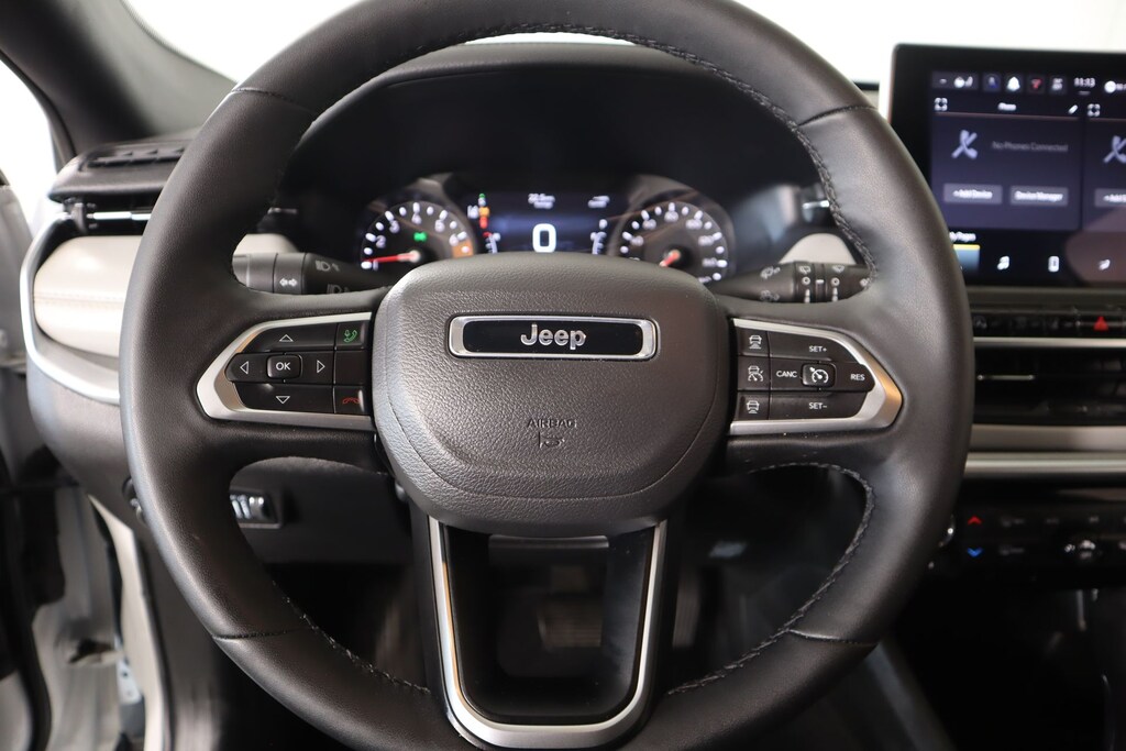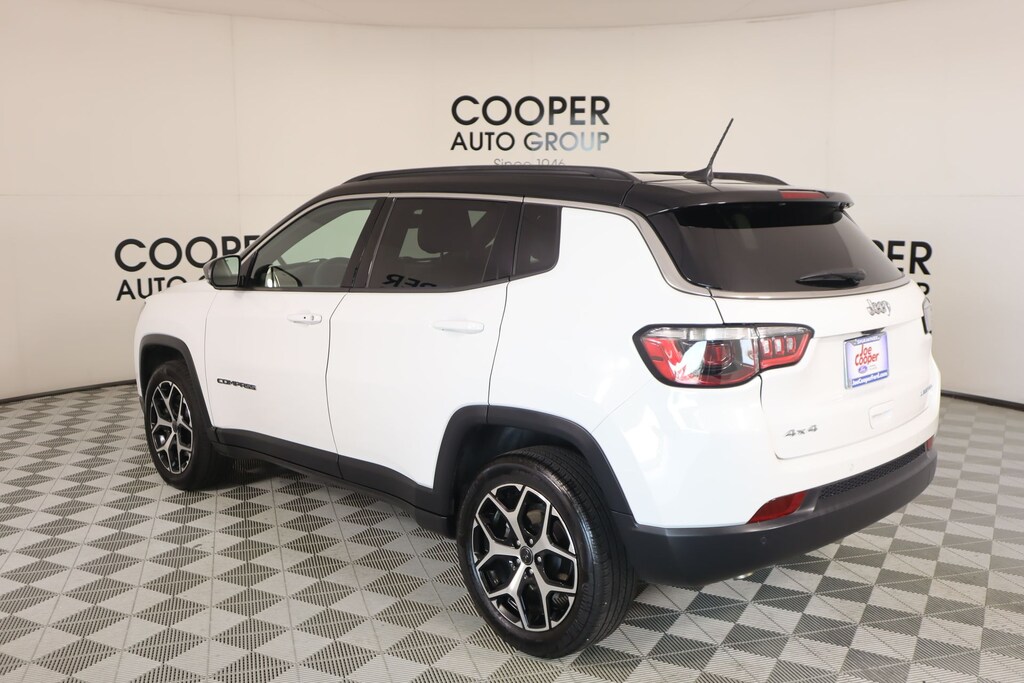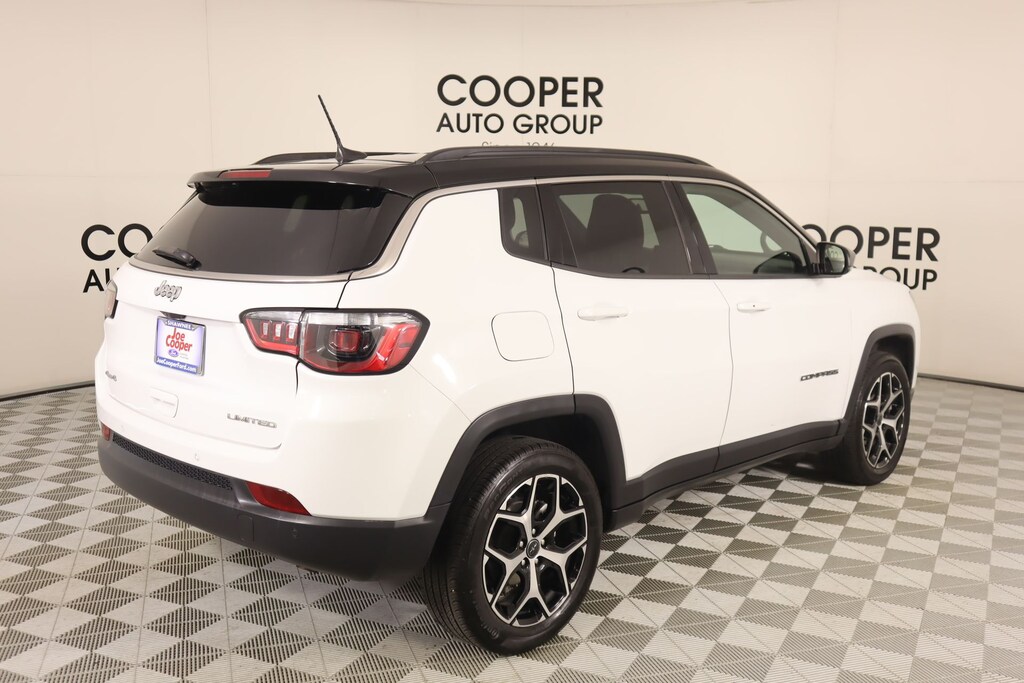THIS VEHICLE COMES EQUIPPED WITH THE FOLLOWING OPTIONS AND FEATURES: Quick Order Package 29G, Compass Limited, 4D Sport Utility, 2.0L I4 DOHC, 8-Speed Automatic, 4WD, Bright White Clearcoat, Black Artificial Leather, 10.1" Touchscreen Display, 3.73 Final Drive Ratio, 4-Wheel Disc Brakes, 6 Speakers, ABS brakes, Air Conditioning, Alloy wheels, AM/FM radio: SiriusXM, Apple CarPlay/Android Auto, Auto High-beam Headlights, Auto-dimming Rear-View mirror, Automatic temperature control, Brake assist, Bumpers: body-color, Compass, Delay-off headlights, Driver door bin, Driver vanity mirror, Dual front impact airbags, Dual front side impact airbags, Electronic Stability Control, Emergency communication system: Jeep Connect, Four wheel independent suspension, Front anti-roll bar, Front Bucket Seats, Front Center Armrest w/Storage, Front dual zone A/C, Front fog lights, Front License Plate Bracket, Front reading lights, Fully automatic headlights, Heated door mirrors, Heated front seats, Illuminated entry, Knee airbag, Leather Shift Knob, Leather steering wheel, Leatherette Seats, Low tire pressure warning, Occupant sensing airbag, Outside temperature display, Overhead airbag, Overhead console, Panic alarm, ParkView Rear Back-Up Camera, Passenger door bin, Passenger vanity mirror, Power door mirrors, Power driver seat, Power steering, Power windows, Premium audio system: UConnect 5, Radio: Uconnect 5 w/10.1" Display, Rain sensing wipers, Rear anti-roll bar, Rear seat center armrest, Rear window defroster, Rear window wiper, Remote keyless entry, Security system, Speed control, S