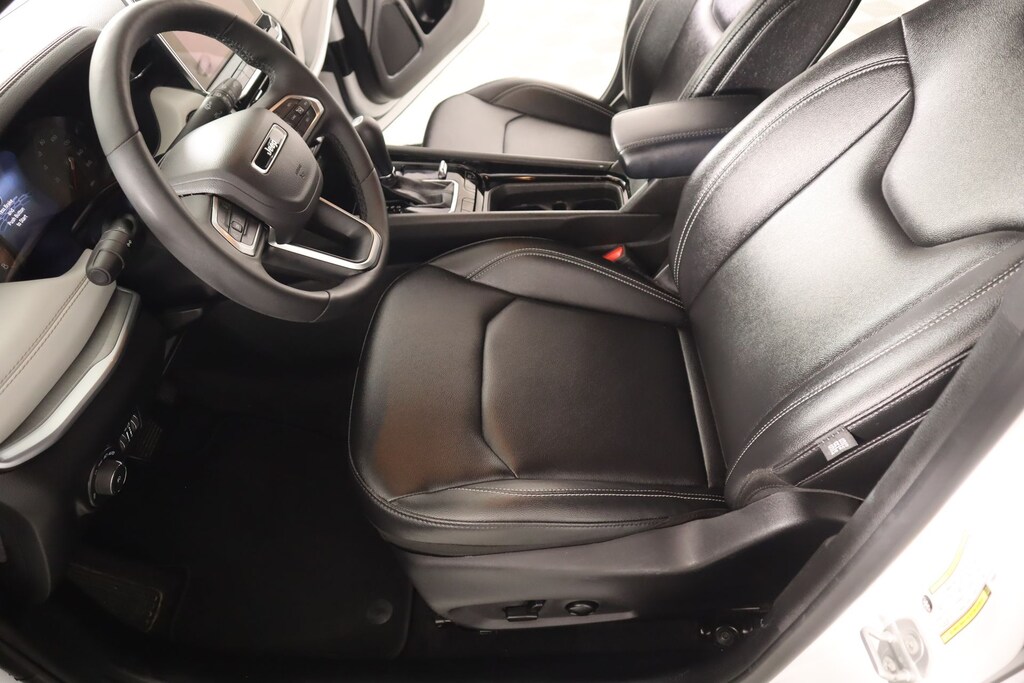 Clean Carfax, One Owner, Bluetooth, Leather, Apple CarPlay, Android Auto, Back Up Camera, Compass Limited, 4D Sport Utility, 2.0L I4 DOHC, 8-Speed Automatic, 4WD, Bright White Clearcoat, Black Artificial Leather, 10.1" Touchscreen Display, 3.73 Final Drive Ratio, 4-Wheel Disc Brakes, 6 Speakers, ABS brakes, Air Conditioning, Alloy wheels, AM/FM radio: SiriusXM, Apple CarPlay/Android Auto, Auto High-beam Headlights, Auto-dimming Rear-View mirror, Automatic temperature control, Brake assist, Bumpers: body-color, Compass, Delay-off headlights, Driver door bin, Driver vanity mirror, Dual front impact airbags, Dual front side impact airbags, Electronic Stability Control, Emergency communication system: Jeep Connect, Four wheel independent suspension, Front anti-roll bar, Front Bucket Seats, Front Center Armrest w/Storage, Front dual zone A/C, Front fog lights, Front License Plate Bracket, Front reading lights, Fully automatic headlights, Heated door mirrors, Heated front seats, Illuminated entry, Knee airbag, Leather Shift Knob, Leather steering wheel, Leatherette Seats, Low tire pressure warning, Occupant sensing airbag, Outside temperature display, Overhead airbag, Overhead console, Panic alarm, ParkView Rear Back-Up Camera, Passenger door bin, Passenger vanity mirror, Power door mirrors, Power driver seat, Power steering, Power windows, Premium audio system: UConnect 5, Quick Order Package 29G, Radio: Uconnect 5 w/10.1" Display, Rain sensing wipers, Rear anti-roll bar, Rear seat center armrest, Rear window defroster, Rear window wiper, Remote keyless entry, Security system, Speed control, Split folding rear seat, Spoiler, Steering wheel mounted audio controls, Tachometer, Telescoping steering wheel, Tilt steering wheel, Traction control, Trip computer, Turn signal indicator mirrors, Variably intermittent wipers, Wheels: 18" x 7" Painted Diamond Cut Alum (DISC).