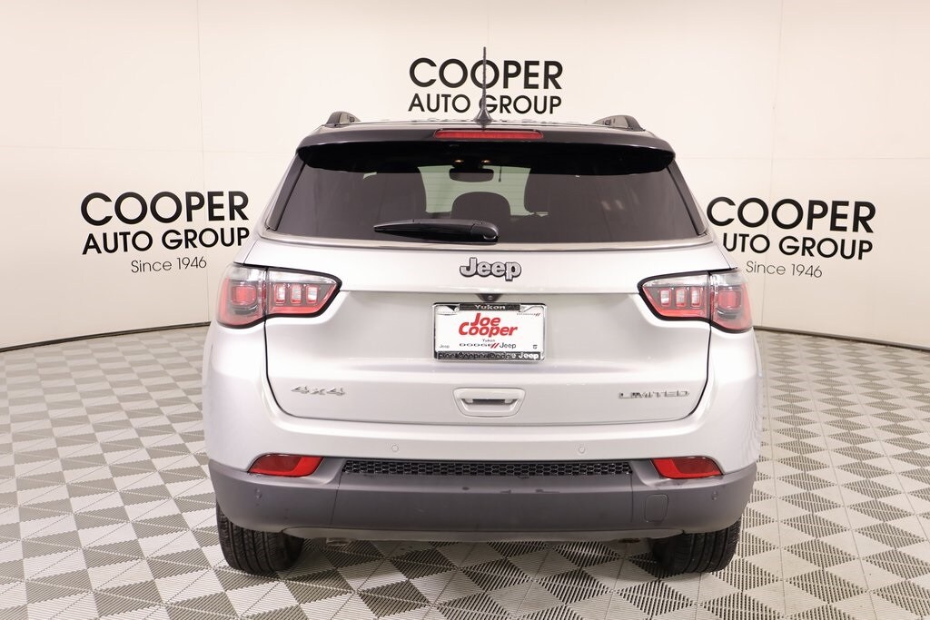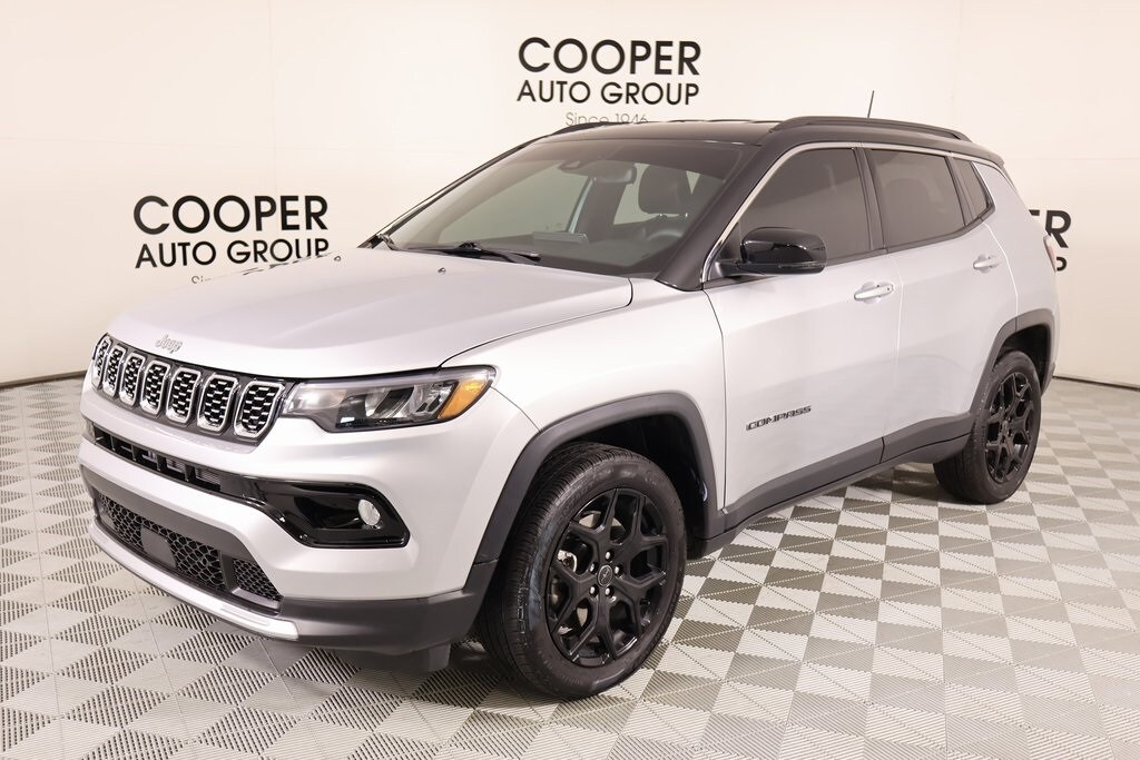 Joe Cooper Chrysler Dodge Jeep Ram of Yukon **405-265-1400** Silver Zynith Metallic Clearcoat 2025 Jeep Compass Limited 4WD 2.0L I4 DOHC THIS VEHICLE COMES EQUIPPED WITH THE FOLLOWING OPTIONS AND FEATURES: Quick Order Package 29G, Cooper Certified Certified, 4WD, 10.1" Touchscreen Display, 3.73 Final Drive Ratio, 4-Wheel Disc Brakes, 6 Speakers, ABS brakes, Air Conditioning, AM/FM radio: SiriusXM, Apple CarPlay/Android Auto, Auto High-beam Headlights, Auto-dimming Rear-View mirror, Automatic temperature control, Brake assist, Bumpers: body-color, Compass, Delay-off headlights, Driver door bin, Driver vanity mirror, Dual front impact airbags, Dual front side impact airbags, Electronic Stability Control, Emergency communication system: Jeep Connect, Four wheel independent suspension, Front anti-roll bar, Front Bucket Seats, Front Center Armrest w/Storage, Front dual zone A/C, Front fog lights, Front reading lights, Fully automatic headlights, Heated door mirrors, Heated front seats, Illuminated entry, Knee airbag, Leather Shift Knob, Leather steering wheel, Leatherette Seats, Low tire pressure warning, Occupant sensing airbag, Outside temperature display, Overhead airbag, Overhead console, Panic alarm, ParkView Rear Back-Up Camera, Passenger door bin, Passenger vanity mirror, Power door mirrors, Power driver seat, Power steering, Power windows, Premium audio system: UConnect 5, Radio: Uconnect 5 w/10.1" Display, Rain sensing wipers, Rear anti-roll bar, Rear seat center armrest, Rear window defroster, Rear window wiper, Remote keyless entry, Security system, Speed control, Split folding rear seat, Spoiler, Steering wheel mounted audio controls, Tachometer, Telescoping steering wheel, Tilt steering wheel, Traction control, Trip computer, Turn signal indicator mirrors, Variably intermittent wipers, Wheels: 18" x 7" Painted Diamond Cut Alum (DISC), and Alloy wheels. Recent Arrival! Cooper Certified, REAR VIEW CAMERA, LEATHER, KEYLESS ENTRY, BLUETOOTH HANDS FREE, APPLE CARPLAY, 4WD, 10.1" Touchscreen Display, 3.73 Final Drive Ratio, 4-Wheel Disc Brakes, 6 Speakers, ABS brakes, Air Conditioning, AM/FM radio: SiriusXM, Apple CarPlay/Android Auto, Auto High-beam Headlights, Auto-dimming Rear-View mirror, Automatic temperature control, Brake assist, Bumpers: body-color, Compass, Delay-off headlights, Driver door bin, Driver vanity mirror, Dual front impact airbags, Dual front side impact airbags, Electronic Stability Control, Emergency communication system: Jeep Connect, Four wheel independent suspension, Front anti-roll bar, Front Bucket Seats, Front Center Armrest w/Storage, Front dual zone A/C, Front fog lights, Front reading lights, Fully automatic headlights, Heated door mirrors, Heated front seats, Illuminated entry, Knee airbag, Leather Shift Knob, Leather steering wheel, Leatherette Seats, Low tire pressure warning, Occupant sensing airbag, Outside temperature display, Overhead airbag, Overhead console, Panic alarm, ParkView Rear Back-Up Camera, Passenger door bin, Passenger vanity mirror, Power door mirrors, Power driver seat, Power steering, Power windows, Premium audio system: UConnect 5, Quick Order Package 29G, Radio: Uconnect 5 w/10.1" Display, Rain sensing wipers, Rear anti-roll bar, Rear seat center armrest, Rear window defroster, Rear window wiper, Remote keyless entry, Security system, Speed control, Split folding rear seat, Spoiler, Steering wheel mounted audio controls, Tachometer, Telescoping steering wheel, Tilt steering wheel, Traction control, Trip computer, Turn signal indicator mirrors, Variably intermittent wipers, Wheels: 18" x 7" Painted Diamond Cut Alum (DISC).