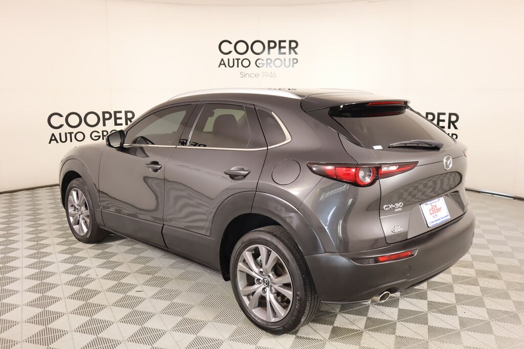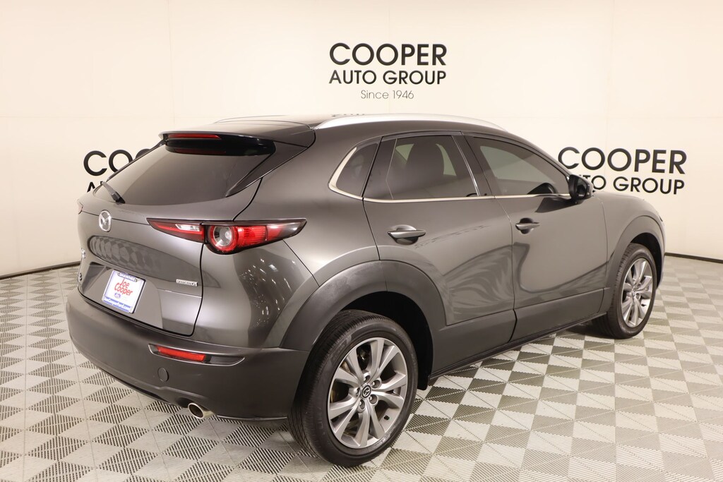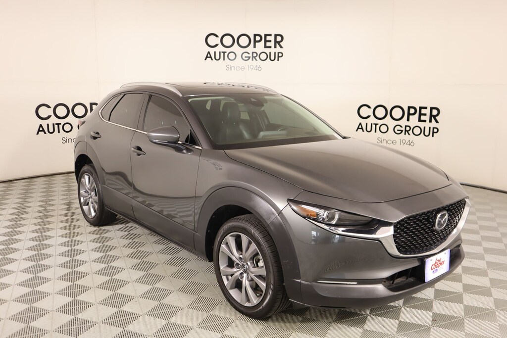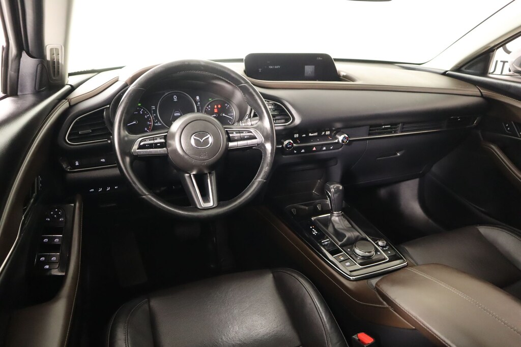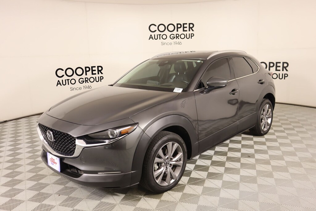 Clean Carfax, Bluetooth, Leather, Navigation, Panoramic Sunroof, Apple CarPlay, Android Auto, Back Up Camera, CX-30 2.5 S Premium Package, 4D Sport Utility, SKYACTIV® 2.5L 4-Cylinder DOHC 16V, 6-Speed Automatic, AWD, Machine Gray Metallic, Black Leather, 4-Wheel Disc Brakes, 4.095 Axle Ratio, 8 Speakers, ABS brakes, Air Conditioning, Alloy wheels, AppLink/Apple CarPlay and Android Auto, Auto High-beam Headlights, Automatic temperature control, Bose Audio Credit, Brake assist, Bumpers: body-color, Compass, Delay-off headlights, Driver door bin, Driver vanity mirror, Dual front impact airbags, Dual front side impact airbags, Electronic Stability Control, Emergency communication system: Mazda Connected Services (3-year complimentary trial included), Exterior Parking Camera Rear, Front anti-roll bar, Front Bucket Seats, Front Center Armrest, Front dual zone A/C, Front reading lights, Front wheel independent suspension, Fully automatic headlights, Heads-Up Display, Heated Front Bucket Seats, Heated front seats, Illuminated entry, Knee airbag, Leather Seat Trim, Leather Shift Knob, Leather steering wheel, Low tire pressure warning, Machine Gray Metallic Paint, MAZDA CONNECT Infotainment System, Memory seat, Navigation system: MAZDA CONNECT, Occupant sensing airbag, Outside temperature display, Overhead airbag, Overhead console, Panic alarm, Passenger door bin, Passenger vanity mirror, Power door mirrors, Power driver seat, Power Liftgate, Power moonroof, Power steering, Power windows, Radio data system, Radio: AM/FM/HD Audio System w/Mazda Navigation, Rain sensing wipers, Rear seat center armrest, Rear side impact airbag, Rear window defroster, Rear window wiper, Remote keyless entry, Speed control, Speed-sensing steering, Split folding rear seat, Spoiler, Steering wheel mounted audio controls, Tachometer, Telescoping steering wheel, Tilt steering wheel, Traction control, Trip computer, Turn signal indicator mirrors, Variably intermittent wipers, Wheels: 18" x 7J Aluminum Alloy.