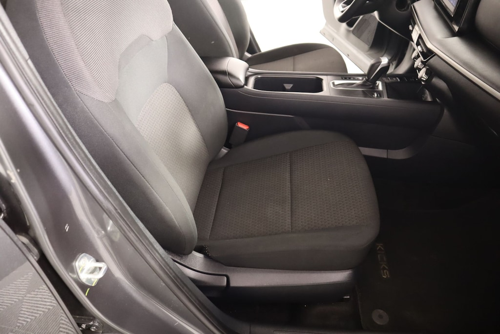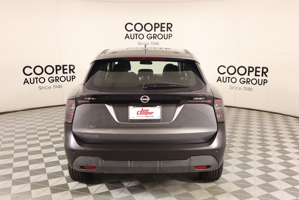 2025 Nissan Kicks Cooper Certified Certified, Radio data system, Radio: AM/FM Audio System, Remote keyless entry, 16" Steel Wheels w/Full Covers, 4 Speakers, 4-Wheel Disc Brakes, ABS brakes, Air Conditioning, AM/FM radio, Auto High-beam Headlights, Blind Spot Warning, Brake assist, Bumpers: body-color, Carpeted Floor Mats & Cargo Mat, Cloth Seat Trim, Driver door bin, Driver vanity mirror, Driver's Seat Mounted Armrest, Dual front impact airbags, Dual front side impact airbags, Electronic Stability Control, Front anti-roll bar, Front Bucket Seats, Front reading lights, Front wheel independent suspension, Fully automatic headlights, Illuminated entry, Knee airbag, Low tire pressure warning, Occupant sensing airbag, Outside temperature display, Overhead airbag, Panic alarm, Passenger door bin, Passenger vanity mirror, Power door mirrors, Power steering, Power windows, Rear anti-roll bar, Rear Parking Sensors, Rear reading lights, Rear side impact airbag, Rear window defroster, Rear window wiper, Security system, Speed control, Speed-sensing steering, Splash Guards, Split folding rear seat, Spoiler, Sport steering wheel, Steering wheel mounted audio controls, Tachometer, Telescoping steering wheel, Tilt steering wheel, Traction control, Trip computer, and Variably intermittent wipers.