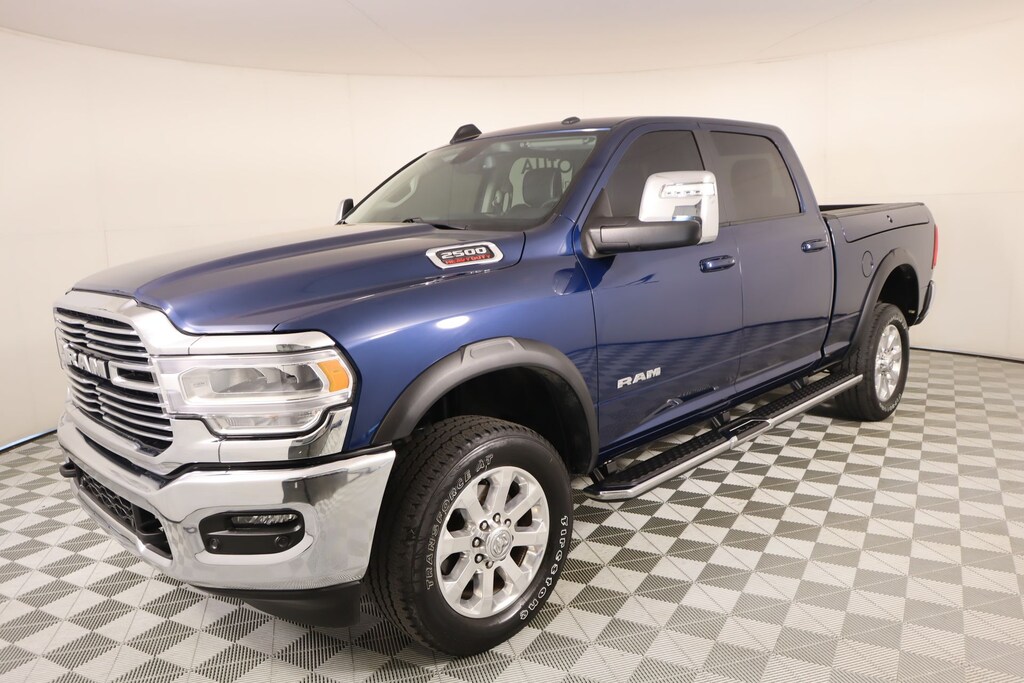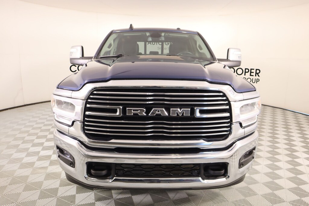 Joe Cooper Chrysler Dodge Jeep Ram of Yukon **405-265-1400** Patriot Blue Pearlcoat 2023 Ram 2500 Laramie 4WD 6.4L V8 THIS VEHICLE COMES EQUIPPED WITH THE FOLLOWING OPTIONS AND FEATURES: Chrome Bumper Package (Bright Front Bumper and Bright Rear Bumper), Laramie Level 1 Equipment Group (12" Touchscreen Display, 2nd Row In Floor Storage Bins, 4G LTE Wi-Fi Hot Spot, Alexa Built-In, Apple CarPlay, Auto Adjust In Reverse Exterior Mirrors, Auto Dim Exterior Mirror, Auto High Beam Headlamp Control, Auto Power-Folding Mirrors, Auto-Dimming Exterior Passenger Mirror, Blind Spot & Cross Path Detection, Chrome Exterior Mirrors, Connected Travel & Traffic Services, Connectivity - US/Canada, Disassociated Touchscreen Display, Exterior Mirrors Courtesy Lamps, Exterior Mirrors w/Heating Element, Exterior Mirrors w/Memory, Exterior Mirrors w/Supplemental Signals, Foam Bottle Insert (Door Trim Panel), For Details, Visit DriveUconnect.com, For More Info, Call 800-643-2112, Forward & Reverse Utility Lights, Front LED Fog Lamps, Global Telematics Box Module (TBM), Google Android Auto, GPS Antenna Input, GPS Navigation, HD Radio, Integrated Voice Command w/Bluetooth, LED Reflector Headlamps, Mirror Running Lights, Off-Road Information Pages, ParkSense Front/Rear Park Assist System, Power Adjust Mirrors, Power Adjustable Convex Aux Mirrors, Power Adjustable Pedals w/Memory, Power Heated Fold Telescopic Mirrors w/Memory, Power Telescoping Mirrors, Radio: Uconnect 5 Nav w/12.0" Display, Radio/Driver Seat/Mirrors/Pedals Memory, Rain Sensitive Windshield Wipers, Rear Power Sliding Window, Rear Window Defroster, Remote Tailgate Release, Selectable Tire Fill Alert, SiriusXM Radio Service, SiriusXM w/360L, and Trailer Tow Pages), Quick Order Package 2GH Laramie, 10 Speakers, 115V Auxiliary Rear Power Outlet, 2 Way Rear Headrest Seat, 20" x 8.0" Polished Aluminum Wheels, 3.73 Axle Ratio, 4 Adjustable Cargo Tie-Down Hooks, 4 Way Front Headrests, 4-Wheel Disc Brakes, ABS brakes, Active Noise Control System, Air Conditioning, Alloy wheels, AM/FM radio: SiriusXM with 360L, Apple CarPlay/Android Auto, Auto-dimming Rear-View mirror, Automatic temperature control, Brake assist, Bumpers: body-color, Center Hub, Chrome Flat Wheel-to-Wheel Side Steps, Compass, CTR Stop Lamp w/Cargo View Camera, Delay-off headlights, Driver door bin, Driver vanity mirror, Dual front impact airbags, Dual front side impact airbags, Electronic Stability Control, Electronically Controlled Throttle, Front anti-roll bar, Front Center Armrest w/Storage, Front dual zone A/C, Front reading lights, Front Seat Back Map Pockets, Fully automatic headlights, Garage door transmitter, Heated door mirrors, Heated Front Seats, Heated front seats, Heated Steering Wheel, Heated steering wheel, Illuminated entry, Leather steering wheel, Leather Trim 40/20/40 Bench Seat, LED Bed Lighting, Low tire pressure warning, Manufacturer's Statement of Origin, MOPAR Front & Rear Rubber Floor Mats, MOPAR Spray In Bedliner, Navigation System, Occupant sensing airbag, Outside temperature display, Overhead airbag, Overhead console, Panic alarm, ParkView Rear Back-Up Camera, Passenger door bin, Passenger vanity mirror, Power 2-Way Driver Lumbar Adjust, Power 2-Way Passenger Lumbar Adjust, Power Adjust 8-Way Driver Seat, Power Adjust 8-Way Front Passenger Seat, Power door mirrors, Power driver seat, Power passenger seat, Power steering, Power windows, Radio data system, Radio: Uconnect 5 Nav w/8.4" Display, RamBox Cargo Management System, Rear 60/40 Folding Seat, Rear anti-roll bar, Rear reading lights, Rear seat center armrest, Rear step bumper, Rear window defroster, Remote keyless entry, Security system, Speed control, Split folding rear seat, Steering wheel mounted audio controls, Tachometer, Tilt steering wheel, Tip Start, Tow Hooks, Traction control, Trip computer, Truck Bed Cargo Divider, Turn signal indicator mirrors, Variably intermittent wipers, Vendor Painted Cargo Box, Vendor Painted Cargo Box Tracking, Volt