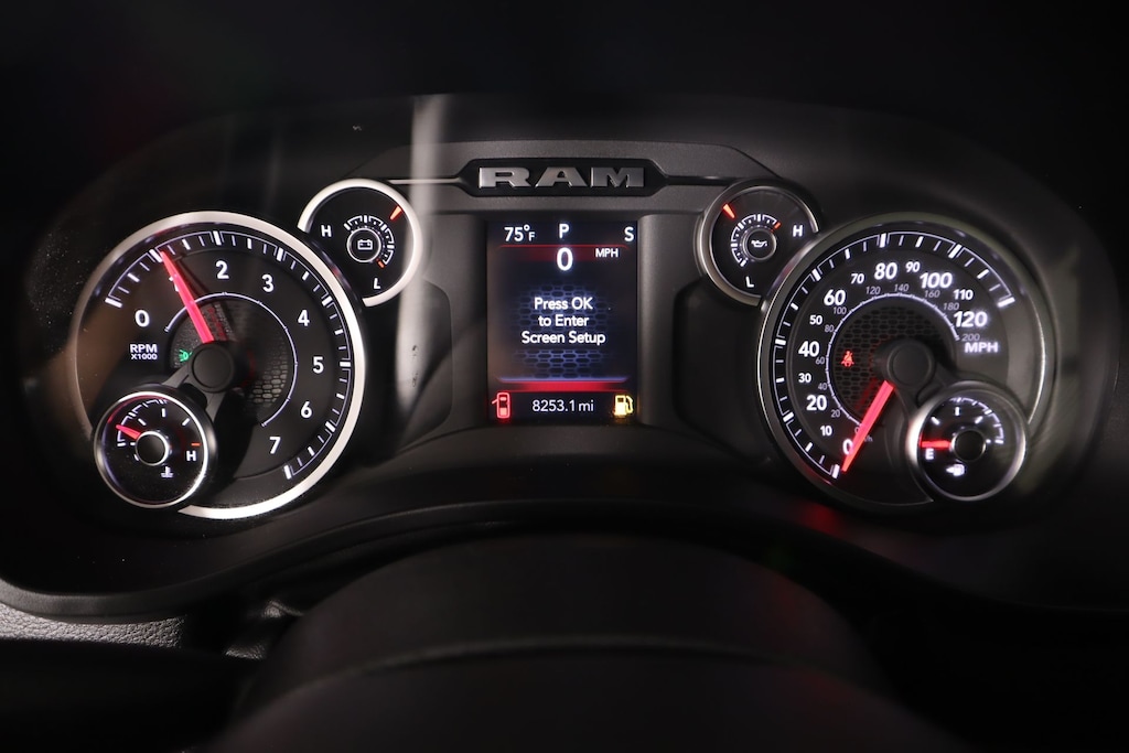2025 Ram 1500 Night Edition (Anti-Spin Differential Rear Axle, Black Exterior Truck Badging, Black Interior Accents, Black RAM Grille Badge, Body Color Front Bumper, Body Color Rear Bumper w/Step Pads, Dual Exhaust w/Black Tips, Front LED Fog Lamps, Grille Black Surround Black Mesh, and Wheels: 18" x 8" Black Painted Aluminum), Quick Order Package 23A Tradesman, Tradesman Level 1 Equipment Group (3 Rear Seat Head Restraints, 4 Way Front Headrests, 40/20/40 Split Bench Seat, Cloth Bench Seat, Front & Rear Floor Mats, Front Center Seat Cushion Storage, Front Seat Back Map Pockets, Manual Adjust 4-Way Driver Seat, Manual Adjust 4-Way Front Passenger Seat, Rear 60/40 Folding Seat, Rear Power Sliding Window, and SiriusXM Satellite Radio), Cooper Certified Certified, Radio: Uconnect 5 w/8.4" Display, 3.55 Rear Axle Ratio, 4-Wheel Disc Brakes, 6 Speakers, ABS brakes, Air Conditioning, AM/FM radio, Apple CarPlay/Android Auto, Auto High-beam Headlights, Black Exterior Mirrors, Brake assist, Compass, Delay-off headlights, Driver door bin, Dual front impact airbags, Dual front side impact airbags, Electronic Stability Control, Exterior Mirrors w/Heating Element, Front anti-roll bar, Front Center Armrest, Front reading lights, Front wheel independent suspension, Fully automatic headlights, Heated door mirrors, Heavy Duty Vinyl 40/20/40 Split Bench Seat, Illuminated entry, Low tire pressure warning, Manual Folding Exterior Mirrors, Occupant sensing airbag, Outside temperature display, Overhead airbag, Overhead console, Panic alarm, ParkView Rear Back-Up Camera, Passenger door bin, Passenger vanity mirror, Power door mirrors, Power steering, Power windows, Radio data system, Rear anti-roll bar, Rear step bumper, Remote keyless entry, Speed control, Tachometer, Telescoping steering wheel, Tilt steering wheel, Traction control, Variably intermittent wipers, Voltmeter, and Wheels: 18" x 7.5" Steel Painted.
