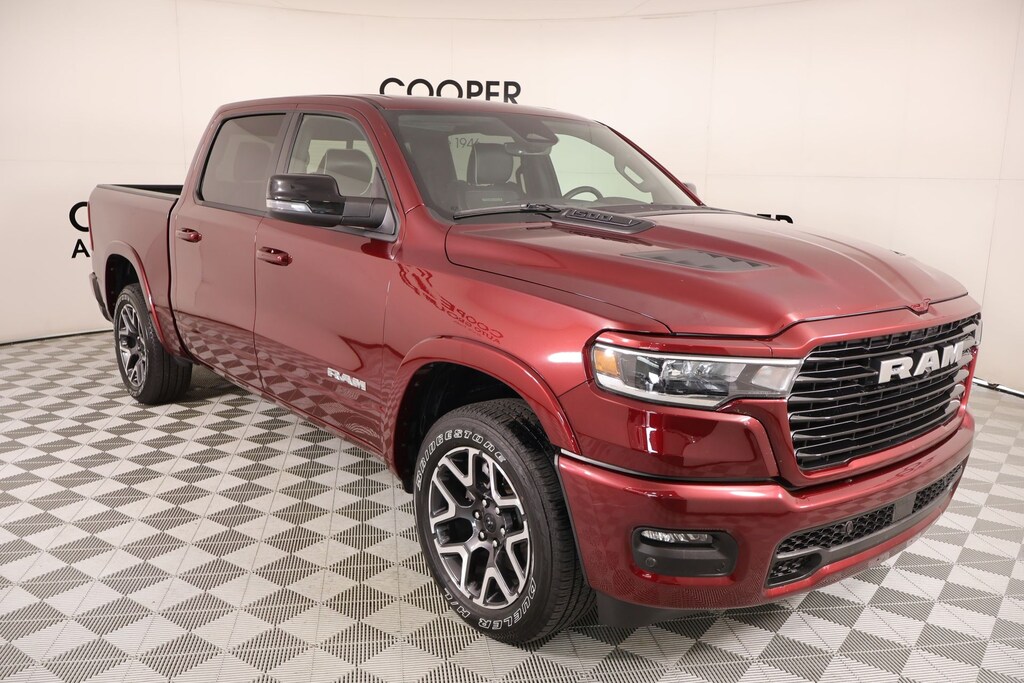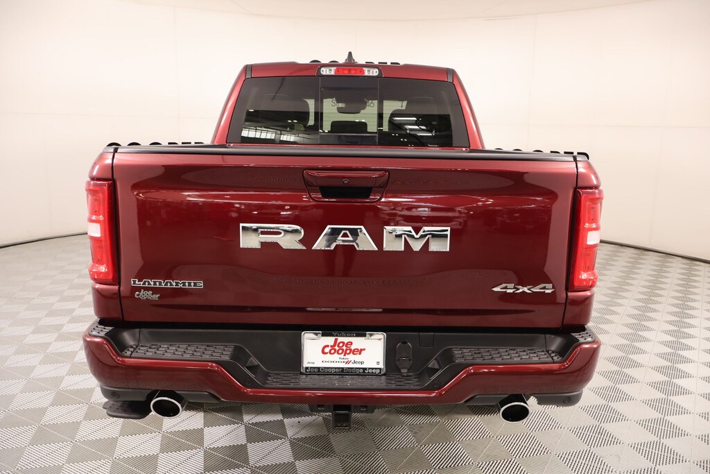 Joe Cooper Chrysler Dodge Jeep Ram of Yukon **405-265-1400** Delmonico Red Pearlcoat 2025 Ram 1500 Laramie 4WD 3.0L I6 THIS VEHICLE COMES EQUIPPED WITH THE FOLLOWING OPTIONS AND FEATURES: Bed Utility Group (MOPAR 4 Adjustable Cargo Tie-Down Hooks and MOPAR Spray In Bedliner), Laramie Level 1 Equipment Group (Rain Sensitive Windshield Wipers and Remote Tailgate Release), Quick Order Package 21H Laramie, Sport Appearance Package (#1 Seat Foam Cushion, 3 Rear Seat Head Restraints, 4 Way Front Headrests, Accent Color Premium Power Mirrors, Auto Power-Folding Mirrors, Auto-Dimming Exterior Driver Mirror, Black Interior Accents, Black Painted Exterior Mirrors Caps, Body Color Front Bumper, Body Color Rear Bumper w/Step Pads, Bridgestone Brand Tires, Bucket Seats, Center Console Parts Module, Convex Wide-Angle Exterior Mirror Insert, Driver Seat Memory, Exterior Mirrors Courtesy Lamps, Exterior Mirrors w/Heating Element, Exterior Mirrors w/Memory, Exterior Mirrors w/Supplemental Signals, Front Seat Back Map Pockets, Full Length Upgraded Floor Console, Grille Surround 3 Body Color Tex 2 Black, Heated Front Seats, Heated Second Row Seats, Heated Steering Wheel, Leather Trimmed Bucket Seats, Power 2-Way Driver Lumbar Adjust, Power 2-Way Passenger Lumbar Adjust, Power Adjust 8-Way Driver Seat, Power Adjust 8-Way Front Passenger Seat, RAM Grille Badge - Chrome, Rear 60/40 Folding Split Recline Seat, Sport Performance Hood, and Ventilated Front Seats), Cooper Certified Certified, 4-Wheel Disc Brakes, 4G LTE Wi-Fi Hot Spot, ABS brakes, Air Conditioning, Anti-Spin Differential Rear Axle, Apple CarPlay, Apple CarPlay/Android Auto, Audio memory, Auto High-beam Headlights, Automatic temperature control, Brake assist, Chrome Exterior Mirrors, Connected Travel & Traffic Services, Connectivity - US/Canada, Delay-off headlights, Dome Dual LED Reading Lamp, Driver door bin, Driver vanity mirror, Dual-Pane Panoramic Sunroof, Electronic Stability Control, Front anti-roll bar, Front Center Armrest w/Storage, Front dual zone A/C, Front fog lights, Front reading lights, Front wheel independent suspension, Fully automatic headlights, Garage door transmitter, GPS Antenna Input, GPS Navigation, Heated front seats, Heated rear seats, Heated steering wheel, Illuminated entry, Integrated Voice Command w/Bluetooth, LED Dome/Reading Lamp, Memory seat, Navigation System, Outside temperature display, Overhead airbag, Overhead console, Panic alarm, Passenger door bin, Passenger vanity mirror, Power door mirrors, Power driver seat, Power steering, Power windows, Radio: Uconnect 5 Nav w/12.0" Display, Rear anti-roll bar, Rear reading lights, Rear seat center armrest, Rear step bumper, Remote keyless entry, Security system, Speed control, Steering wheel mounted audio controls, Telescoping steering wheel, Tilt steering wheel, Traction control, Variably intermittent wipers, 10 Speakers, 3.55 Rear Axle Ratio, Alloy wheels, AM/FM radio: SiriusXM with 360L, Auto-dimming door mirrors, Auto-dimming Rear-View mirror, Bumpers: chrome, Compass, Dual front impact airbags, Dual front side impact airbags, Google Android Auto, HD Radio, Heated door mirrors, Leather steering wheel, Leather Trim 40/20/40 Bench Seat, Low tire pressure warning, MOPAR Front & Rear Rubber Floor Mats, Occupant sensing airbag, ParkView Rear Back-Up Camera, Power passenger seat, Radio data system, SiriusXM w/360L, Split folding rear seat, Tachometer, Trip computer, Turn signal indicator mirrors, USB Host Flip, Ventilated front seats, Voltmeter, and Wheels: 20" x 9" Premium Paint/Polish. Recent Arrival! Cooper Certified, NO ACCIDENT HISTORY ON CARFAX!!!!, NAVIGATION/GPS/NAV, REAR VIEW CAMERA, LEATHER, ONE OWNER, KEYLESS ENTRY, BLUETOOTH HANDS FREE, APPLE CARPLAY, #1 Seat Foam Cushion, 3 Rear Seat Head Restraints, 4 Way Front Headrests, 4-Wheel Disc Brakes, 4G LTE Wi-Fi Hot Spot, ABS brakes, Accent Color Premium Power Mirrors, Air Conditioning, Anti-Spin Differential Rear Axle, Apple CarPlay, Apple CarPlay/An