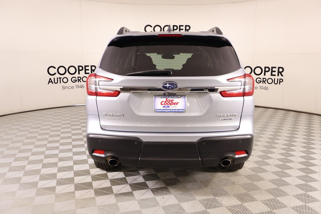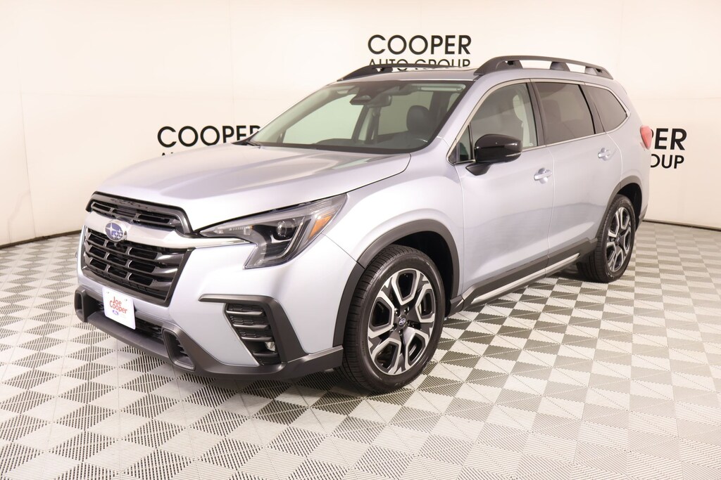 THIS VEHICLE COMES EQUIPPED WITH THE FOLLOWING OPTIONS AND FEATURES: Technology Package (Cabin Connect, Crystal Black Power-Folding Exterior Power Mirrors, Panoramic Power Moonroof w/UV/Drk Tint Dual Glass, Radio: Subaru STARLINK 11.6" Multimedia Nav System, Retractable Cargo Area Cover, and Surround View Monitor System), Ascent Limited, 4D Sport Utility, 2.4L 4-Cylinder DOHC 16V, Lineartronic CVT, AWD, Ice Silver Metallic, Black Leather, 3rd row seats: bench, 4-Wheel Disc Brakes, 6 Speakers, ABS brakes, Air Conditioning, Alloy wheels, AM/FM radio: SiriusXM, Auto High-beam Headlights, Auto-dimming Rear-View mirror, Automatic temperature control, Axle Ratio: 4.44, Brake assist, Bumpers: body-color, Compass, Delay-off headlights, Driver door bin, Driver vanity mirror, Dual front impact airbags, Dual front side impact airbags, Electronic Stability Control, Emergency communication system: STARLINK Safety and Security (Subscription Required), Exterior Parking Camera Rear, Four wheel independent suspension, Front anti-roll bar, Front Bucket Seats, Front Center Armrest, Front dual zone A/C, Front fog lights, Front reading lights, Fully automat