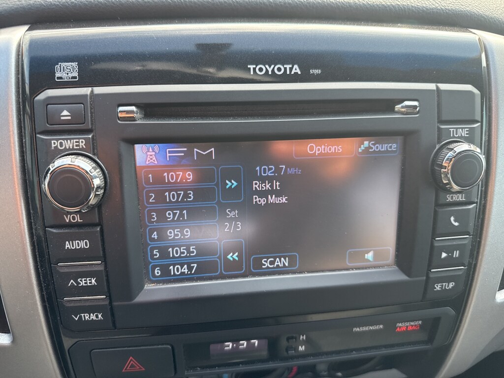 2013 Toyota Tacoma Air Conditioning, AM/FM/CD w/6 Speakers, 7 Speakers, ABS brakes, AM/FM radio, Anti-whiplash front head restraints, Brake assist, CD player, Driver door bin, Dual front impact airbags, Dual front side impact airbags, Electronic Stability Control, Fabric Seat Trim, Front anti-roll bar, Front Bucket Seats, Front Center Armrest, Front reading lights, Front wheel independent suspension, Illuminated entry, Low tire pressure warning, Occupant sensing airbag, Overhead airbag, Overhead console, Passenger door bin, Passenger vanity mirror, Power door mirrors, Power steering, Power windows, Rear step bumper, Speed-sensing steering, Split folding rear seat, Tachometer, Telescoping steering wheel, Tilt steering wheel, and Traction control.