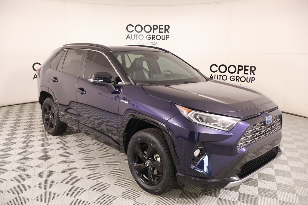 Low Miles, AWD/4WD, ** BLUETOOTH **, ** BACKUP CAMERA **, ** NAVIGATION SYSTEM **, ** MOONROOF/SUNROOF **, ** ADAPTIVE CRUISE CONTROL **, ** LANE DEPARTURE WARNING **, ** AUTOMATIC TRANSMISSION **, ** HEATED SEATS **, ** BLIND SPOT MONITOR **, ** POWER SEATS **, ** KEYLESS ENTRY **, ** HI-FI SOUND SYSTEM**, ** LED HEADLIGHTS **, ** APPLE CAR PLAY **, ** LOCAL TRADE **, Cooper Certified, RAV4 Hybrid XSE AWD, 4D Sport Utility, 2.5L 4-Cylinder, eCVT, AWD, Blue Print w/Midnight Black Roof, Black w/SofTex Seat Trim, Alloy wheels, Anti-Theft System, Front Door Smart Key System w/Push Button Start, Front LED Fog & Driving Lamp, Front Seat Heating, Wheels: 18" x 7.0J Black-Painted Aluminum Alloy, XSE Package. THIS VEHICLE COMES EQUIPPED WITH THE FOLLOWING OPTIONS AND FEATURES: XSE Package (Anti-Theft System, Front Door Smart Key System w/Push Button Start, Front LED Fog & Driving Lamp, and Front Seat Heating), RAV4 Hybrid XSE AWD, 4D Sport Utility, 2.5L 4-Cylinder, eCVT, AWD, Blue Print w/Midnight Black Roof, Black w/SofTex Seat Trim, Alloy wheels, Wheels: 18" x 7.0J Black-Painted Aluminum Alloy, 4-Wheel Disc Brakes, 6 Speakers, ABS brakes, Air Conditioning, AM/FM radio: SiriusXM, Apple CarPlay/Android Auto, Auto High-beam Headlights, Auto-dimming Rear-View mirror, Automatic temperature control, Axle Ratio: TBD, Brake assist, Bumpers: body-color, Delay-off headlights, Driver door bin, Driver vanity mirror, Dual front impact airbags, Dual front side impact airbags, Electronic Stability Control, Emergency communication system: Safety Connect with 1-year trial, Four wheel independent suspension, Front anti-roll bar, Front Bucket Seats, Front Center Armrest, Front dual zone A/C, Front fog lights, Front reading lights, Fully automatic headlights, Garage door transmitter: HomeLink, Heated door mirrors, Heated Front Seats, Heated front seats, Illuminated entry, Knee airbag, Leather Shift Knob, Low tire pressure warning, Occupant sensing airbag, Outside temperature display, Overhead airbag, Overhead console, Panic alarm, Passenger door bin, Passenger vanity mirror, Power door mirrors, Power driver seat, Power Liftgate, Power moonroof, Power steering, Power windows, Radio data system, Radio: Audio Plus, Rear anti-roll bar, Rear seat center armrest, Rear window defroster, Rear window wiper, Remote keyless entry, Roof rack: rails only, Security system, SofTex Seat Trim (EC), Speed control, Speed-sensing steering, Split folding rear seat, Spoiler, Steering wheel mounted audio controls, Telescoping steering wheel, Tilt steering wheel, Traction control, Trip computer, Turn signal indicator mirrors, and Variably intermittent wipers.