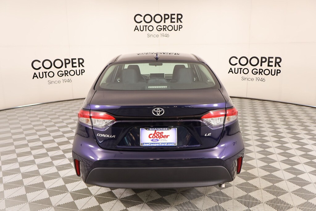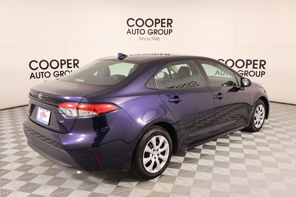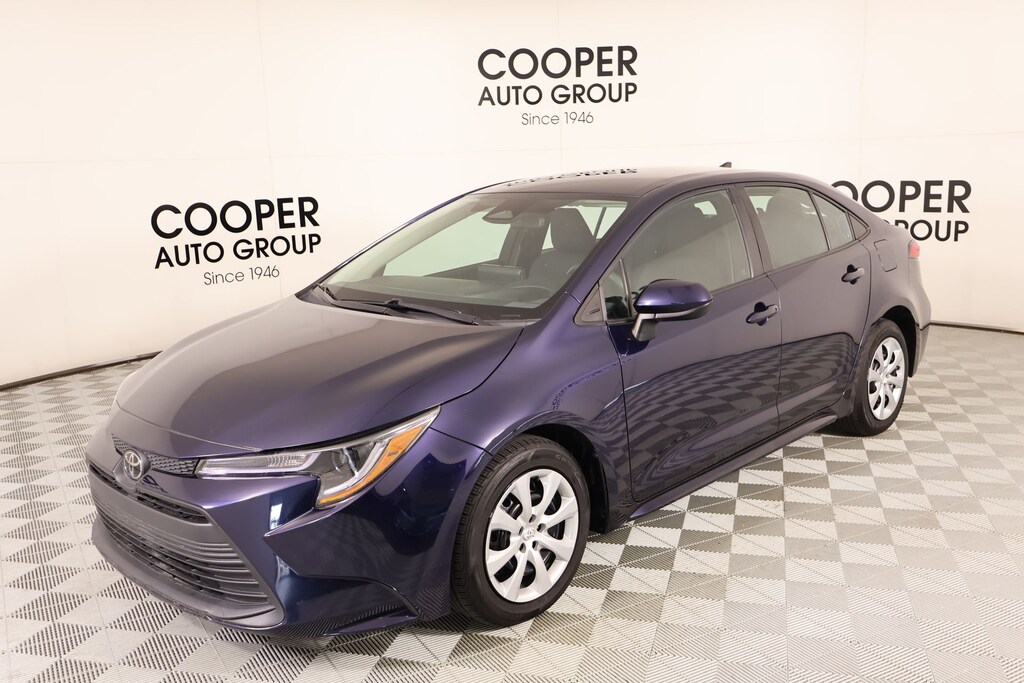 THIS VEHICLE COMES EQUIPPED WITH THE FOLLOWING OPTIONS AND FEATURES: Corolla LE, 4D Sedan, 2.0L I4 DOHC 16V, CVT, FWD, Blueprint, Black Cloth, 4-Wheel Disc Brakes, 6 Speakers, ABS brakes, Air Conditioning, AM/FM radio: SiriusXM, Auto High-beam Headlights, Automatic temperature control, Brake assist, Bumpers: body-color, Delay-off headlights, Driver door bin, Driver vanity mirror, Dual front impact airbags, Dual front side impact airbags, Electronic Stability Control, Emergency communication system: Safety Connect (up to 10-year trial subscription), Exterior Parking Camera Rear, Front anti-roll bar, Front Bucket Seats, Front Center Armrest, Front reading lights, Front wheel independent suspension, Fully automatic headlights, Illuminated entry, Knee airbag, Low tire pressure warning, Occupant sensing airbag, Outside temperature display, Overhead airbag, Panic alarm, Passenger door bin, Passenger vanity mirror, Power door mirrors, Power steering, Power windows, Premium Fabric Seat Trim, Radio data system, Radio: 8" Toyota Audio Multimedia, Rear anti-roll bar, Rear seat center armrest, Rear side impact airbag, Rear window defroster, Remote keyless entry, Speed control, Split folding rear seat, Steering wheel mounted audio controls, Tachometer, Telescoping steering wheel, Tilt steering wheel, Traction control, Trip computer, Variably intermittent wipers, and Wheels: 16" Wide Vent Steel.