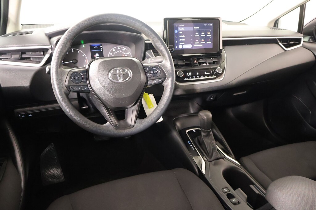 Bluetooth, Apple CarPlay, Android Auto, Back Up Camera, Corolla LE, 4D Sedan, 2.0L I4 DOHC 16V, CVT, FWD, Blueprint, Black Cloth, 4-Wheel Disc Brakes, 6 Speakers, ABS brakes, Air Conditioning, AM/FM radio: SiriusXM, Auto High-beam Headlights, Automatic temperature control, Brake assist, Bumpers: body-color, Delay-off headlights, Driver door bin, Driver vanity mirror, Dual front impact airbags, Dual front side impact airbags, Electronic Stability Control, Emergency communication system: Safety Connect (up to 10-year trial subscription), Exterior Parking Camera Rear, Front anti-roll bar, Front Bucket Seats, Front Center Armrest, Front reading lights, Front wheel independent suspension, Fully automatic headlights, Illuminated entry, Knee airbag, Low tire pressure warning, Occupant sensing airbag, Outside temperature display, Overhead airbag, Panic alarm, Passenger door bin, Passenger vanity mirror, Power door mirrors, Power steering, Power windows, Premium Fabric Seat Trim, Radio data system, Radio: 8" Toyota Audio Multimedia, Rear anti-roll bar, Rear seat center armrest, Rear side impact airbag, Rear window defroster, Remote keyless entry, Speed control, Split folding rear seat, Steering wheel mounted audio controls, Tachometer, Telescoping steering wheel, Tilt steering wheel, Traction control, Trip computer, Variably intermittent wipers, Wheels: 16" Wide Vent Steel.