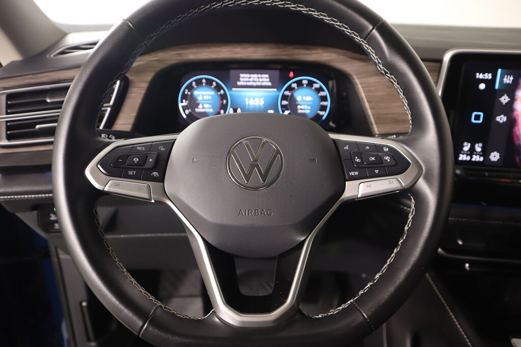 Low Miles, AWD/4WD, ** BLUETOOTH **, ** BACKUP CAMERA **, ** NAVIGATION SYSTEM **, ** LEATHER SEATS **, ** MOONROOF/SUNROOF **, ** HEATED/COOLED SEATS **, ** ADAPTIVE CRUISE CONTROL **, ** LANE DEPARTURE WARNING **, ** AUTOMATIC TRANSMISSION **, ** HEATED SEATS **, ** HEATED STEERING WHEEL **, **HEATED REAR SEATS**, ** PARKING SENSORS **, ** 3RD ROW SEATING **, ** BLIND SPOT MONITOR **, ** POWER SEATS **, ** KEYLESS ENTRY **, ** HI-FI SOUND SYSTEM**, ** LED HEADLIGHTS **, ** HEAD UP DISPLAY **, ** APPLE CAR PLAY **, ** ACCIDENT FREE ON CARFAX **, ** LOCAL TRADE **, Cooper Certified, 2ND ROW CAPTAIN CHAIRS, Atlas 2.0T SEL AWD, 4D Sport Utility, 2.0L TSI, 8-Speed Automatic, AWD, Mountain Lake Blue Metallic, Titan Black w/perforated vienna leather seating surfaces, 20" 2-tone machined alloy wheels, Alloy wheels. THIS VEHICLE COMES EQUIPPED WITH THE FOLLOWING OPTIONS AND FEATURES: Atlas 2.0T SEL AWD, 4D Sport Utility, 2.0L TSI, 8-Speed Automatic, AWD, Mountain Lake Blue Metallic, Titan Black w/perforated vienna leather seating surfaces, 20" 2-tone machined alloy wheels, Alloy wheels, 2nd-row dual captain's chairs, 3rd row seats: split-bench, 4-Wheel Disc Brakes, 6 Speakers, ABS brakes, Air Conditioning, AM/FM radio: SiriusXM with 360L, Auto High-beam Headlights, Auto-dimming Rear-View mirror, auto-dimming rearview mirror with HomeLink Connect, Automatic temperature control, Brake assist, Bumpers: body-color, Compass, Delay-off headlights, Driver door bin, Driver vanity mirror, Dual front impact airbags, Dual front side impact airbags, Electronic Stability Control, Emergency communication system: VW Car-Net Safe & Secure 5-year, Exterior Parking Camera Rear, Four wheel independent suspension, four-wheel independent suspension, Front anti-roll bar, Front Bucket Seats, Front Center Armrest, Front dual zone A/C, Front fog lights, Front reading lights, Fully automatic headlights, Heads-Up Display, heated and Actively ventilated front bucket seats, Heated door mirrors, Heated front seats, Heated rear seats, Heated steering wheel, heavy duty trunk liner with VW CarGo blocks, Illuminated entry, Low tire pressure warning, Memory seat, MIB3 discover media with navigation, Navigation System, Occupant sensing airbag, Outside temperature display, Overhead airbag, Overhead console, Panic alarm, Passenger door bin, Passenger vanity mirror, perforated vienna leather seating surfaces, Power door mirrors, Power driver seat, Power Liftgate, Power moonroof: Panoramic, Power passenger seat, Power steering, Power windows, Radio data system, Rain sensing wipers, Rear air conditioning, Rear anti-roll bar, Rear reading lights, Rear seat center armrest, Rear window defroster, Rear window wiper, Remote keyless entry, rubber mats kit (2-row), Security system, Speed control, Speed-sensing steering, Split folding rear seat, Spoiler, Steering wheel mounted audio controls, Tachometer, Telescoping steering wheel, Tilt steering wheel, Traction control, Trip computer, Turn signal indicator mirrors, Variably intermittent wipers, Ventilated front seats, Volkswagen logo puddle lights, and VW care.